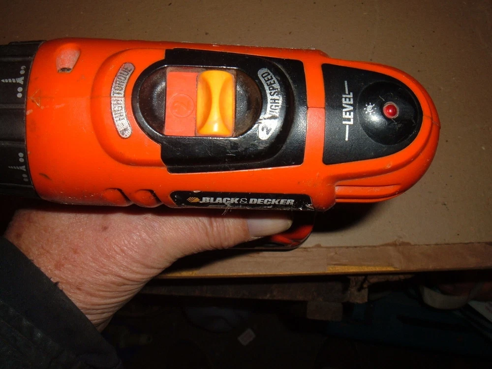 black & decker 14.4 drill with battery, with high speed setting & high torque setting & built in level, works good battery needs recharging,