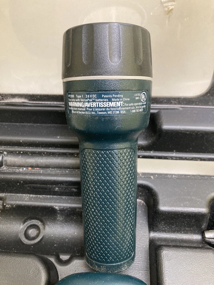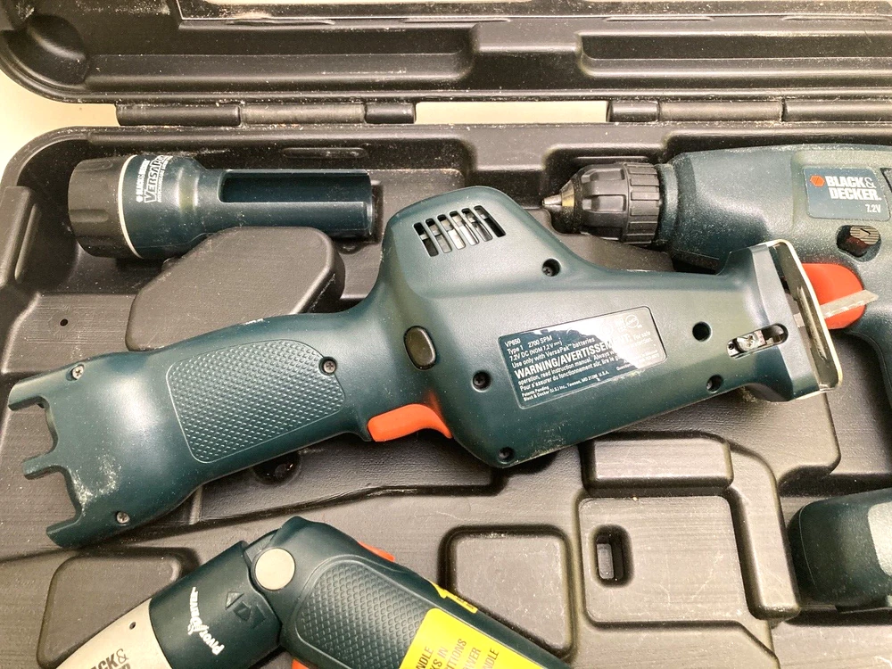Black & Decker VersaPak 4 Piece Combo Tool Set With Case ( No Batteries/Charger) Excellent used condition! Near mint. Tools are very gently used. Includes: VP650 Jigsaw, VP 870 Power Drill, Pivot Driver, Flashlight and carrying case. Ships within 1 business day!