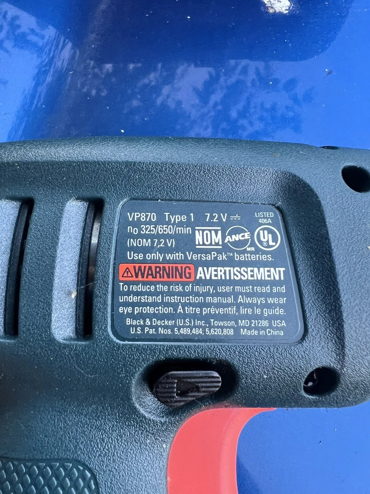 Black & Decker VersaPak VP870 7.2 Volt Cordless Drill