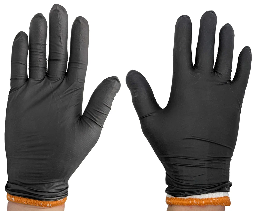 Kit includes 50 outer nitrile black disposable gloves with textured grip plus 2 machine washable and reusable inner cotton glove liners. Great smoker, grill, bbq accessories. Texture provides additional grip on grill tools, cutlery and meats with more surface area than standard black BBQ gloves by channeling away liquid from sauces, oils, rendered fat and more. Heavy duty, industrial 6 mil thickness nitrile black cooking gloves grill accessories provide better puncture and tear resistance and are an excellent barrier against meat, sauces, oils and grease Cotton glove liners under the BBQ disposable gloves are the perfect for BBQ by providing heat resistance handling food over the grates and the convenience of a disposable outer grilling meat gloves Large size grill gloves are free, latex free and food safe black nitrile heavy duty disposable bbq gloves provide extra comfort during heavy duty and extended use