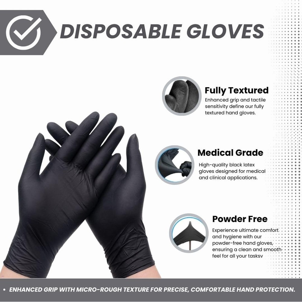 Unveil Uncompromised Quality: Explore 's Black Latex Examination Gloves, a pinnacle of excellence - safe for food handling. Elevate Hygiene with Style: Experience the elegance of sleek black gloves, merging fashion with function. Ideal for safe food practices. Power Through Tasks Confidently: With the perfect fit in Size Large, these gloves empower you to tackle food handling effortlessly and securely. The Pinnacle of Protection: Trust in these gloves, ensuring a comfortable and snug fit for different uses. Unlock Versatility & Reliability: Embrace a glove designed for adaptability, delivering unmatched reliability for professionals and enthusiasts alike.