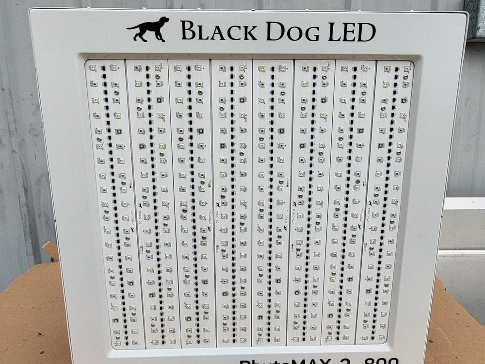 I have 10 used Black Dog LED PhytoMAX-2 800 LED Grow Lights, that are in excellent condition. Only used for 2 runs! I've been growing for 20 years, and these are hands down the best yielding lights, I have ever owned. Don't settle for less! Trichome production is off the charts! At 840 actual watts and 1282 μMol/s total photon flux, the patent-pending PhytoMAX-2 800 LED grow light will outperform any 1000W HID light. With PhytoMAX-2 we have delivered the most powerful and reliable, truly full spectrum grow lights (365-750nm, UV to NIR)! The PhytoMAX-2 800 uses only the highest-quality, latest-technology, top-bin LEDs to deliver Black Dog LED's proprietary full-cycle Phyto-Genesis Spectrum evenly over the entire footprint, with unprecedented PAR levels, canopy penetration and yields! Features & details MADE IN USA BY INDUSTRY LEADERS: Black Dog LED produces the most powerful LED grow lights with the largest research-proven footprints (without hot spots).COMPACT AND POWERFUL: High light intensity and energetic spectrum, crucial for canopy penetration to nourish lower leaves and flowers.INCREDIBLE GROW RESULTS: PhytoMAX-2 800 LED grow lights better penetrate dense canopies to produce a superior yield with higher quality flowers and more trichomes.LARGE FOOTPRINT: Up to 6' X 6' (36 square feet!) of flowering footprint coverage! Proven by independent spectroradiometer testing.OFTEN IMITATED, BUT NEVER DUPLICATED : Unique Phyto-Genesis Spectrum - The most efficient spectrum for growing plants, based on over 6 years of research and testing, outperforming HPS, MH, CMH (LEC), induction, fluorescent, and "white", so-called "full-spectrum" LEDs in equal wattage tests.