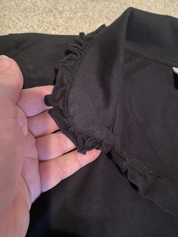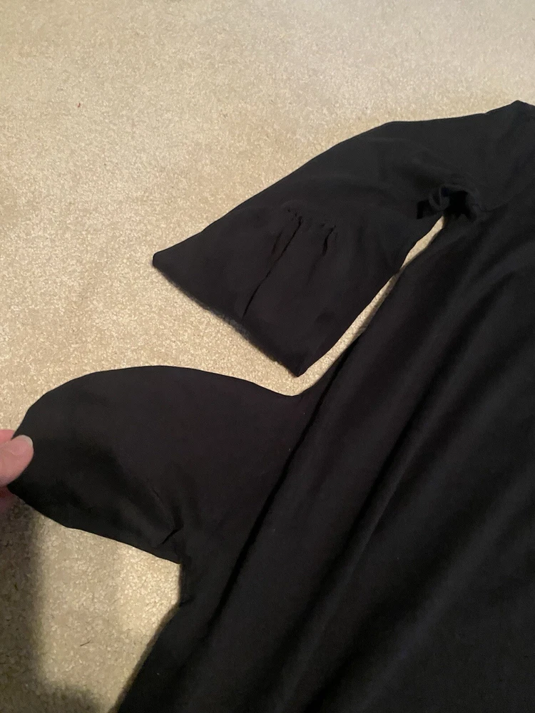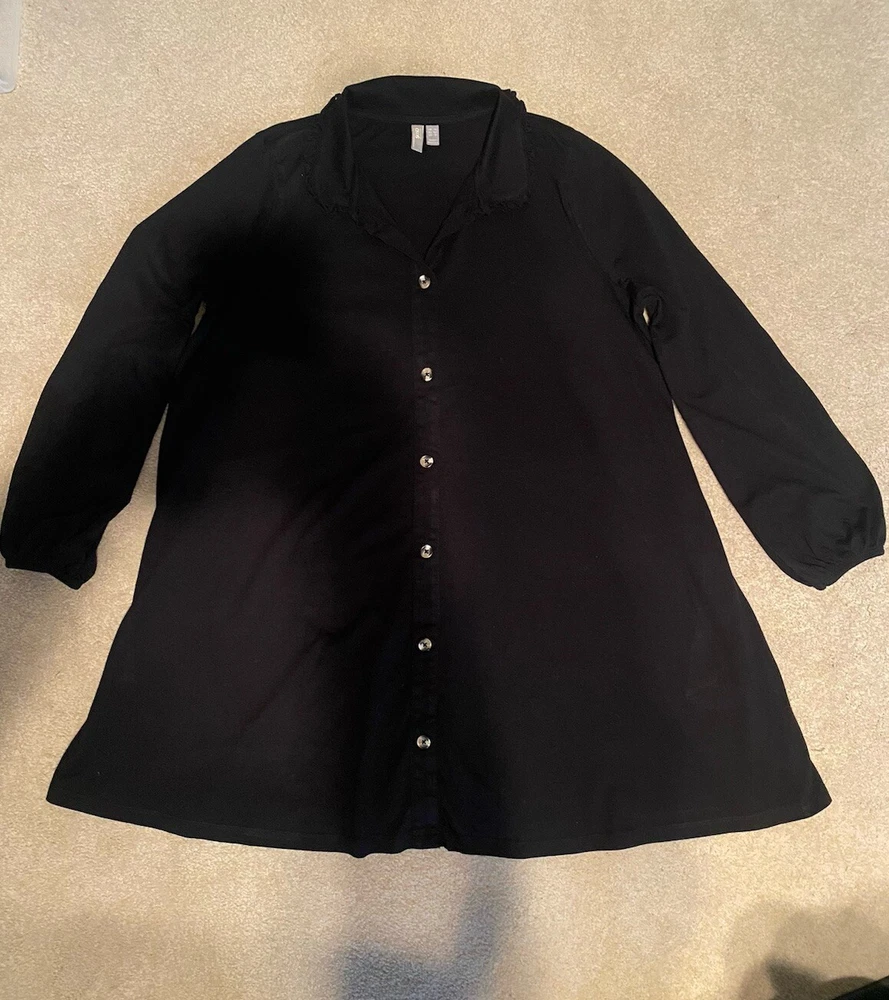 CUTE!! Black dress, long sleeves, button front, shirt style dress, cute colllar, sleeves bell out a little at the bottom. Ladies size 16.