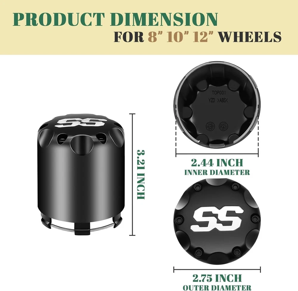 STORE HOME ALL ITEMS ABOUT US FEEDBACK CONTACT US click thumbnails above to enlarge Product Description -Compatible Golf Cart Models: fits most of Club Car, EZGO, Yamaha golf carts with 8'' 10'' 12'' wheels. Height 3.21"/ outer diameter 2.75" -No Tools Required Install Enhanced Appearance: easy to install and snap on without any tools. Replace your old golf cart centre hub caps to give your cart a cooler look. -Please Note: Bend the clips a bit before installing, that way you will not break a clip or crack a cover. -List of Packages: 4 pack black SS wheel center hub caps. For one golf cart. High quality and durable A new driving experience Upgrade your golf cart Easy to install Delivery Terms of return After-sale Payment Delivery -Our warehouse located in GA, US. -We will process your package within 1-2 business days after your payment. It will take about 2-7 working days to reach to you. -Gentle Reminder: the following addresses are not available for delivery - Alaska, Guam, Hawaii, Puerto Rico. APO/FPO, US Protectorates. Terms of return -Return within 30 days from the purchase date - item must be unused and in original condition (packaging + tag included) -We will offer refund or replacement according to you massage left after received and have the returned item checked. After-sale -Comes with 1 year warranty. -We will always stand behind our products and strive to provide more variety of cart parts and golf accessories. -Please feel free to turn to us for any question regarding installation or the product. Payment -We accept payment through PayPal and all other Ebay approved forms of payment. -Payment must be made within 8 Working days after the auction/bid ends, or eBay will open Unpaid Item case automatically later. -When you have any questions about payment, shipping or product, Please send us an ebay message.Thank you. PRODUCT CATEGORIES Club Car Part YAMAHA Part EZGO Part Universal Part ABOUT DRIVE-UP 2018 Founded in 2018 73+ professional employees 15+ manufacturing years 3000+ factory area 80+ global sales country WHY CHOOSE DRIVE-UP ? Free shipping Free shipping on all domestic (u.s.) deliveries - no more extra charge included Professional service and guidance Provide installation guidance service After-sale Comes with 1 year warranty. USEFUL LINK STORE HOME HOT ITEMS ABOUT US FEEDBACK CONTACT US Copyright © DRIVE-UP. All Rights Reserved. PAYMENT