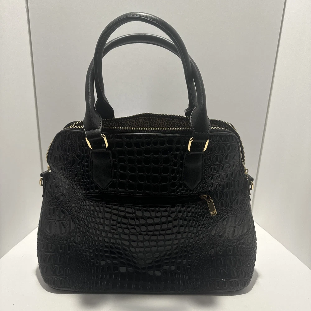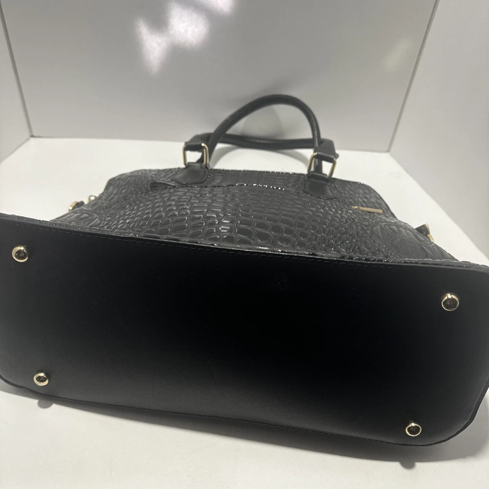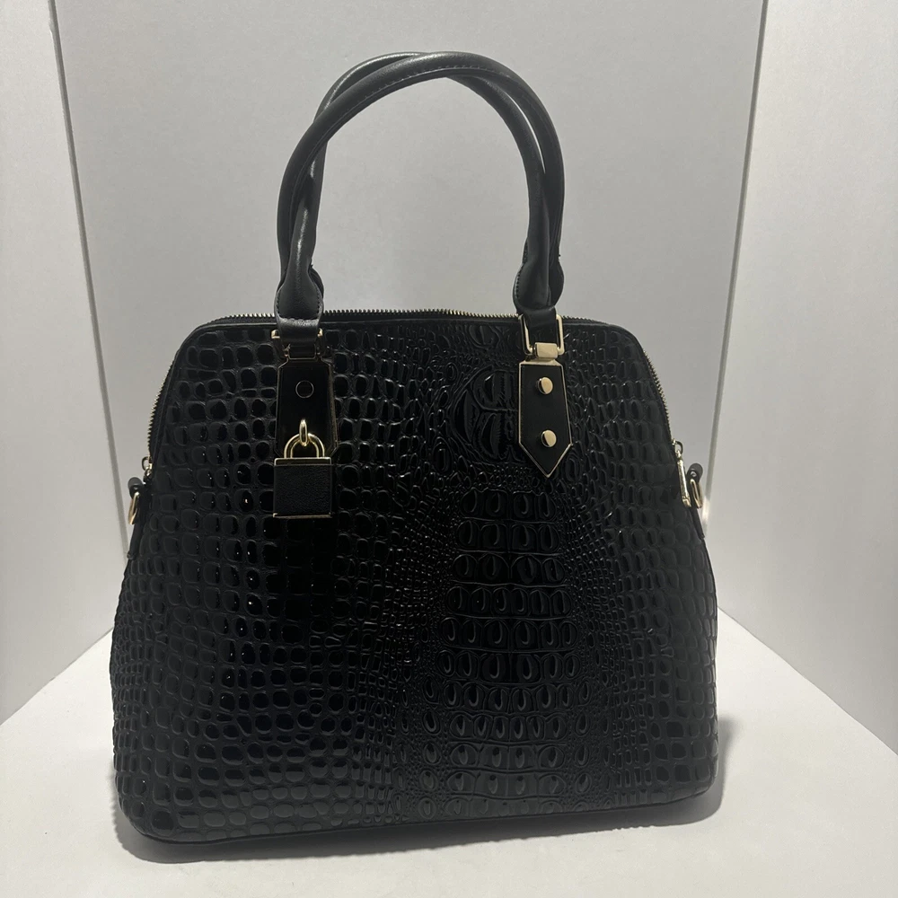 Black Faux Crocodile Pattern Handbag