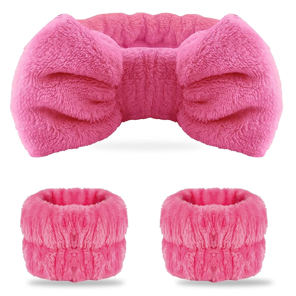 Portable Microfiber Headband and wristband: the package contains 1pcs headband and 2pcs wristband in black color, the headband can avoid hair from falling in front of your face, and the wristband can effectively prevent water from flowing down your arms when you wash your face, bring you a good wearing experience. Strong water absorb ability: Our headbands and wristbands are made of quality microfiber material, which has a comfortable touch. The inside contains stretchable elastic bands, which have strong elasticity, suitable for most people's circumference of head and wrist Stylish Appearance: Adorable bow tie shape on the top of headband, makes you extraordinary sweet and cute. The bows themselves are not sew into the headband, so they are removable and can mix and match if that something you're interested in. And the soft wristband like a beautiful flower on your wrist. Considerate gift choice: the package contains 1 headband and 2pcs wristband that perfectly meed one person’s desire, a practical combination for girls and women to apply in everyday life, you can give your mom, sister, or other female friends as gifts. We suggested WASH HEADBAND BEFORE USE, because the headband maybe stick little fuzzies at produce process, but headband itself is won't fall small fuzzies. Wide application: this set of headband and wrist band are useful accessories for ladies and girls when doing spa, sports, yoga, face-washing, makeup and taking a shower. Product Description Package content: 1pcs black spa headband 2pcs wrist wash band PRODUCT DETAIL Soft Material: The spa headband is made of soft coral fleece material, which is soft and fluffy, friendly to skin. E xquisite Design: T he bow knot shape on the top of the spa headband, makes you extraordinary sweet and cute. G ood elasticity: T he bow hair band is of good elasticity, can be stretched to 12 inch, easily to fit your head size. L ess Waste: T he bow spa headbands are washable and reusable, ultra absorbent water, easy to wear. CUTE BLACK BOW TIE HEADBAND!!! 1.How to wear spa headband? Firstly wear the headband around the neck Then pull up headband until it align with hairline or on the forehead top. Done! Tips: If the bow headband goes over your forehead it’s easily slip down. 2.Strong functions: Spa Headbands -- For keeping hair out of face when applying makeup cosmetic or washing face. Sweet hair accessory to use in the bathroom or hang out in the bed. Makeup Headband -- Cosmetic headband bowknot shape on the top of the headband, makes you extraordinary sweet and cute Suitable For -- Can be used for adults as well as for children, The soft texture does not harm to children's skin; The Elastic hair bands can be stretched to 12 inch, easily to fit your head size Can be used as -- Hairlace headband design, it will be more convenience while washing face, applying the mask, doing spa facials, playing yoga, running, exercising or any time you want to hold your hair. Can also be used for Halloween Costume and pajama parties. FLUFFY WRIST SPA WASH BAND!!! 1.Useful and practical: Wear it on your wrist when washing face and effectively prevent liquid from spreading and spilling down to your arms when washing. 2. Advantage of WSYUB wrist wash band Strong water absorption, and effectively isolate water flow, keep you clothes clean and dry. High elasticity good for keep band in place and not easily slide off. Soft material let you touch soft and comfortable, not hurt your skin. 3.Suitable situation: The wrist wash band perfect for most daily situation such as washing face, spa, yoga, makeup, doing sports or house work and so on. Very useful in your life. Suit for machine wash or hand wash Black headband and 2pcs wrist wash band Good elascility Keep clean and dry