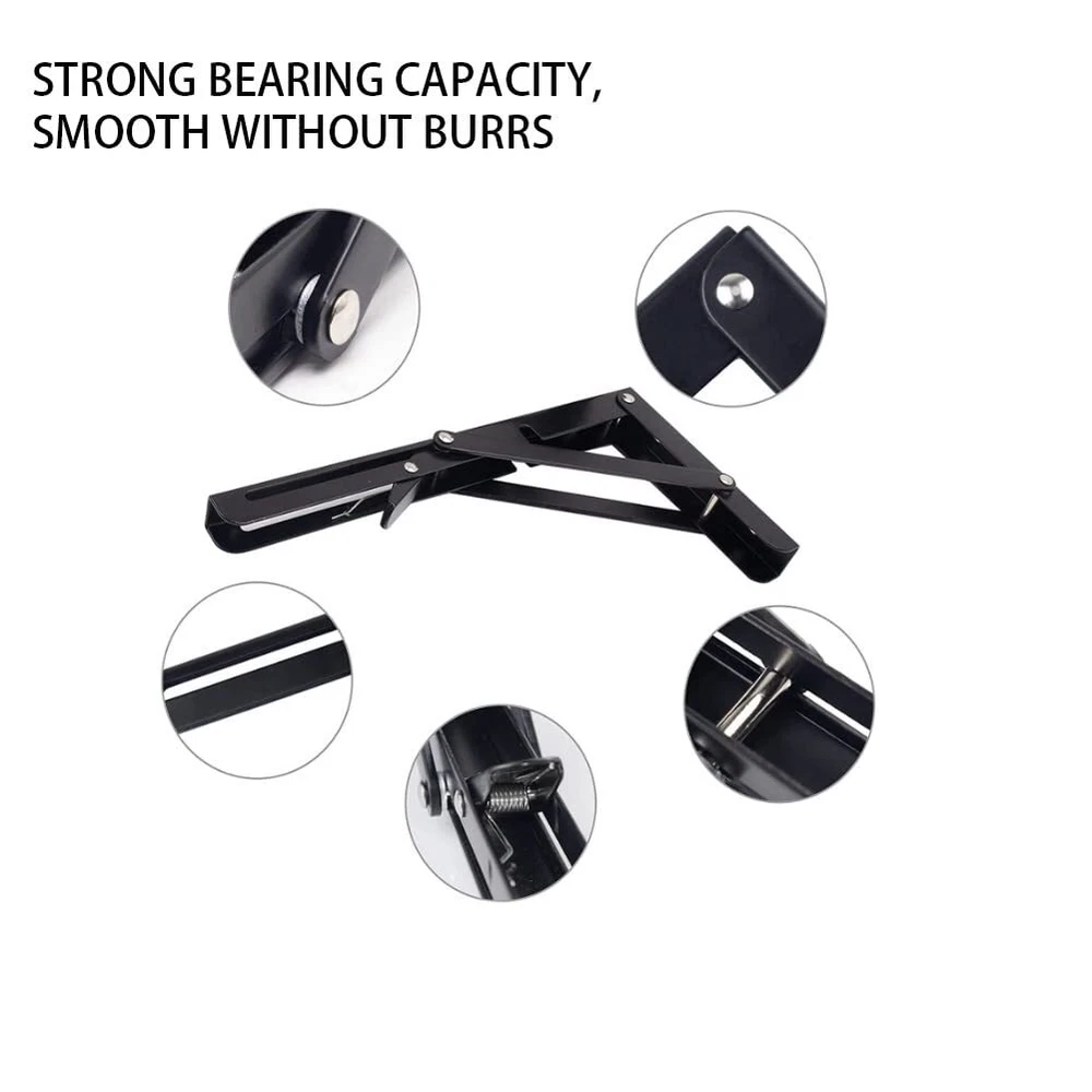 BEAUTIFUL AND STYLISH - It is crafted from solid steel with a sleek finish that goes perfectly in a rustic or industrial home decor scheme. Great for open shelving concept in a kitchen, displaying a library of books in a study or even for extra storage in a powder room. Use with an unfinished wood board for a more contemporary look and a stark contrast between metal and wood or with a piece of weathered wood for a more farmhouse vibe Space Saving - These folding brackets are perfect for DIY jobs around the house. Pop it out when you need it and fold it away to save space when not in used. You can use these brackets to save most space in your garage, laundry room, kitchen, workshops, boats, backyard, trailer, bedroom, balcony, bathroom, etc Easy Installation - The shelf brackets are easy to mount just make sure they are straight on the studs when you do mount them. Comes with mounting accessories, High quality screws and top quality anchors Strong Enough, Holds a Lot of Weight - Dimensions of the brackets: 8inches x 6.9inches. Triangle structure, holds a good amount of weight, supports up to 220lb/100kg. Could be used to make a workstation in your garage, a folding study table for your kids, bench in your backyard, clothes table in laundry room, bookshelf, kitchen shelf, exhibition stand, etc Buy With Confidence - If there are any issues or you think everything is not as advertised, please feel free to contact us, we will refund every penny of your money or give you a replacement at no cost. Just enjoy this absolutely Risk Free purchase
