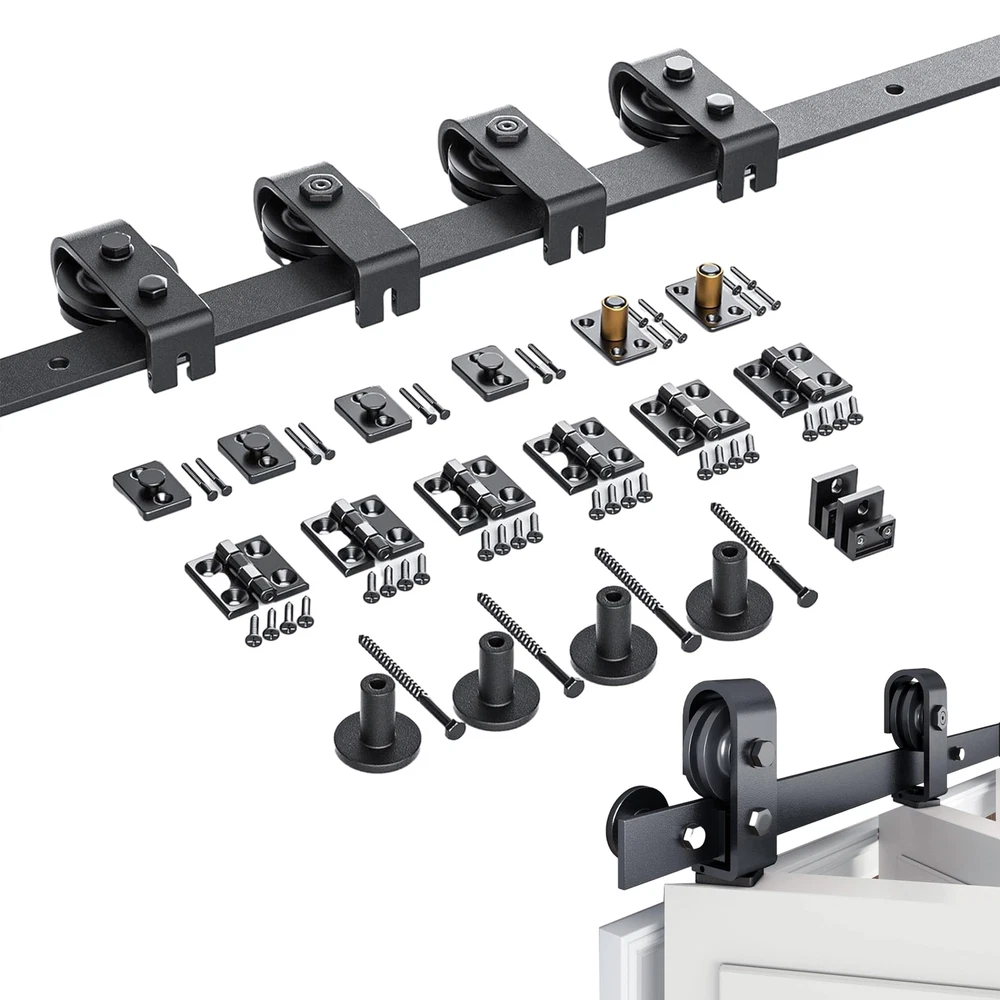 Black Folding Sliding Barn Door Guide Rail Set Carbon Steel Hardware Track Kit Color: Black Material: Carbon steel Track size: 64 inches (162CM) Track splicing method: 4 Scope of application: door thickness 0.5-50MM 4x FT orbit 4x roller 4x roller rotating bracket 2x roller holder 6x hinge 2x ground guide fastener 2x seal strip 1x screw bag 1x Specification 5x tube clamp 35mm 5xm8*90 wood teeth screws We only accept Paypal . Payment is expected within 2 days from the end of the auction. We send all the items are based on your paypal address. Therefore, please make sure your paypal address is valid. * International Buyers Please Note: Import duties, taxes and charges are not included in the item price or shipping charges. These charges are the buyer’s responsibility. Please check your country’s custom office to determine whether these additional costs will be prior to bidding / buying. We only ship this item to United State! We ship to your eBay address. Each package will be shipped to USA by UPS or Fedex with tracking number. Please check your shipping address carefully before checkout, it can't be changed if order completed. Ship within 1-2 business day once payment completed. Orders placed on weekend will be shipped within 3 days. Seriously promise: Refund or resend will be offered if item still not arrive in 7-10 business days. Just send us an email ,we will give you a satisfied solution as soon as possible. We maintain high standards of excellence FIVE STAR and strive for 100% customer satisfaction! Positive Feedback is very important to us. We hope that you contact us immediately BEFORE you give us neutral or negative feedback, so that we can satisfactorily address your concerns. We promise to offer the lowest price and high quality produce. Our working time: From Monday to Friday(9:00 am to 18:00pm), we do not work on holidays in China,hope you can understand and know that , thank you. Please always talk to us via ebay Message. We appreciate your business and look forward to growing our e-Bay sales with satisfied customers. If you dissatisfied for any reason, Please don't leave negative or neutral feedback at once. We work hard to make sure EVERY CUSTOMER 100% SATISFIED and resolve any problem for you and always leave positive feedback for all our customers. If you are satisfied with the product you received ,please leave us positive feedback and 5 scores DSR. Dear buyers,Welcome to our store!Your satisfaction is our top goal,we appreciate your business. If you have any questions, please feel free to contact with us by ebay Message during our business hours ( 9:30a.m. to 5:30 p.m.), or email us through eBay, we will try our best to help you to resolve it. If you are satisfied with our service, please rate the details of the transaction (Detailed Seller Ratings) on eBay and We will do the same for you. If you are not satisfied with the product or service ,please contact us before leave negative or natural feedback, we will try our best to solve the issue to your satisfaction, thanks. For any presale or after-sale questions,please do feel free to email us! Due to the time difference, each email will be replied within 1 working day,and weekend will be delayed a bitThanks for your patronizing!