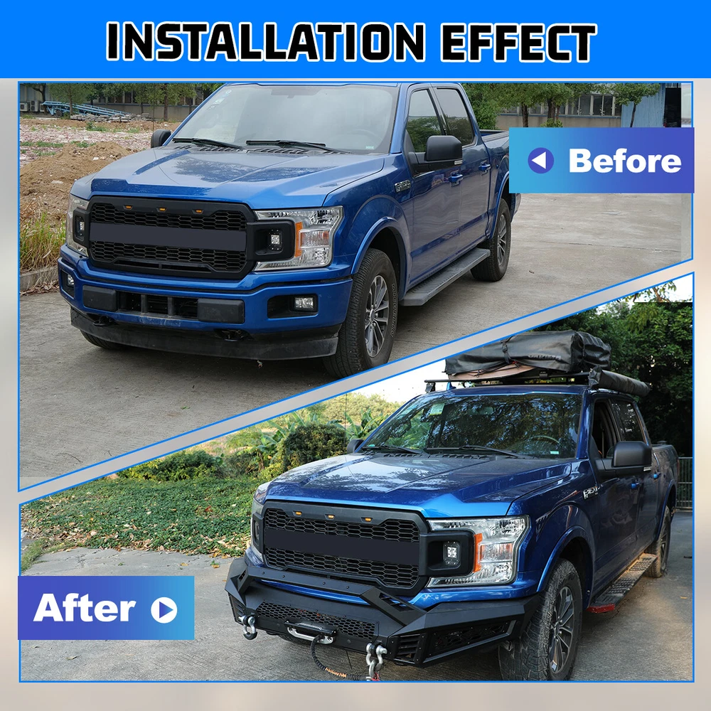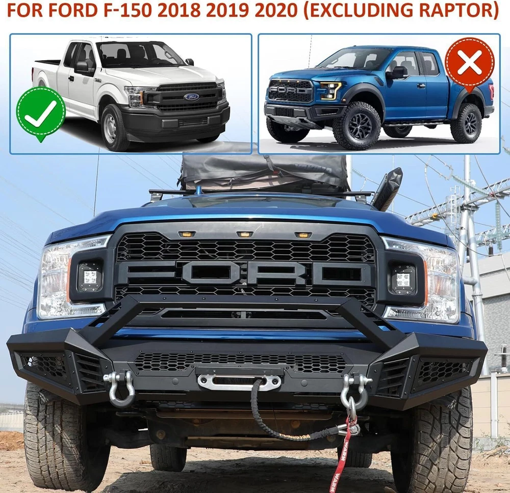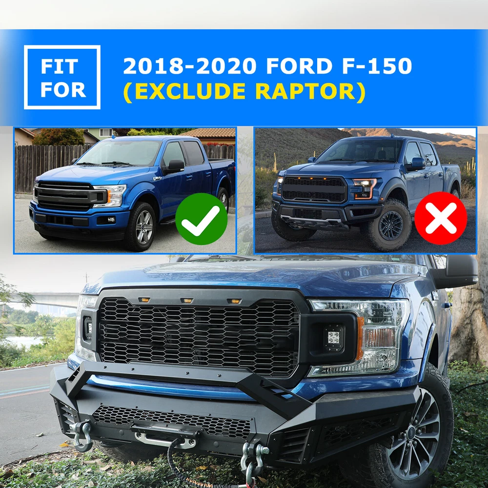 Head Lights Tail Lights Fog Lights Turn Signal Bumper Fender Flare Inner Fender Hubcaps Refrigerator Other Items for sale Head Lights Tail Lights Fog Lights Turn Signal Bumper Fender Flare Inner Fender Liners Portable Refrigerator May you Like LED Tail Lights Brake Rear Lamps Pair for 2016-2021 Toyota Tacoma - Clear Lens 159.99 USD LED Tail Lights Rear Lamps For 2016-2021 Toyota Tacoma Black Smoke Lens Pair L+R 196.02 USD LED DRL Tail Lights for 2016-2023 Toyota Tacoma Turn Signal Black Clear Pair 196.02 USD LED Tail Lights Rear Lamps for 2016-2021 Toyota Tacoma Chrome Red Lens Pair 196.02 USD Black Front Bumper For 2018-2020 Ford F150 Heavy Steel w/LED Pod Lights Winch Plate : https://www.ebay.com/itm/405192049582 Specifications: Material :Q235A Type: Heavy Duty Bumper Placement on Vehicle: Front Attachment Type: Bolt-on Direct replacement Surface Finish: Black Anti Rust Powder Coated Steel Premium quality aftermarket product Free 60 days return 1 years warranty Size: Mid-Width Front Bumper: Product Dimensions: 44.5 x 10.5 x 9.1 inch Package Dimensions: 48 x 13.2 x 9.4 inch Product Weight: 57 lbs Side Wing: Product Dimensions: 22.1 x 24 x 11.3 inch Package Dimensions: 34.2 x 21.1 x 10.2 inch Product Weight: 39.5 lbs Features: Mid-Width Front Bumper: Decorative Bezel--- Allows DIY colour spraying Flip-up Licence Plate Mounting Bracket--- Flip-up Licence Plate Mounting Bracket is include Shackle Mounting Brackets & Shackles--- Shackles are included Winch Cable Guide Mouting Hole--- Winch Rope Cable Lead Guide is not include Light Bar Mounting Bracket--- Can be installed light bar up to 30 inches, Light is not included Side Wings: Wing Guard Trim Blocks Shark Gill-like Decorative Panels:Allows DIY colour spraying Honeycomb decorative mesh panels:Allows DIY colour spraying Pod Light Mounting Bracket:Accept 2 3" or 4" Pods Light on Each Side(include 2 x 4" Pods Lights) Fitment: For 2018-2020 Ford F-150(Exclude Raptor) Package Includes: 1 × Mid-Width Front Bumper (w/2 x D Shackles) 2 × Full-Width Side Wings (w/2 x 4" Pods Lights) Mounting Hardware Kit Note:Two packages are shipped, and installation instructions are attached. If you have any questions, please contact us. We provide high-quality and fast pre-sales and after-sales services. Payment Shipping Return About us Contact us Payment Appreciated for the prompt payment, Contact us if bid by mistake, system open unpaid item automatically. Payment must be complete within 3 days from the date you purchase or after the end of auction. Items unpaid within 3 days of the auction end will be forfeited. We reserve the right of cancel the order and re-selling the items. Shipping All shipment will ship by UPS or USPS . All items will be ship within 1 working days , and we will ship out all orders as soon as possible after payment verified, please allow up to 1-4 business days for delivery. CANADA & International customers please note: your government might charge a duty tax (brokerage fees). We do not responsible for any custom duty or import tax. Why Choose the US Stock? 1. Us Local Shipping, No Extra Customs Cost to the US. 2. Fast Delivery: 1-4 Working days Delivery. 3. Best After-Sales Service!!! Return The buyer is responsible for all return shipping including a result of customer error or defective item. 1) If you received an incorrect, damaged, defective, or item not as described, contact us for full refund or replacement on our cost. 2) If you want to return the item, please contact us within 60 days after package received. Return products must also be in its original condition: including box, packaging and all other accessories. About us We are the best auto parts, we have been pursuing excellence, continuous exploration as the slogan, let customer satisfaction is our purpose! We adhere to the United States local delivery, one year warranty! Welcome! Contact us How Should You Contact us? Please Read The Item Description And See if The item Fits Your Vehicle Exactly. If You Found Any questions, Feel Free to email us by "Ask a question" Our Office Hours Are Monday - Friday 8:00am - 5:00pm PST / 11:00am - 8:000pm ET, We Do Not Answer Any E-Mails On Weekend, And We Will Reply All E-Mails In The Order It Was Receive. All E-Mail Take Us Around 24 Hours To Respond To Any E-Mail. We Are Close During The Weekends And We Do Not Answer Any E-Mails During That Time.