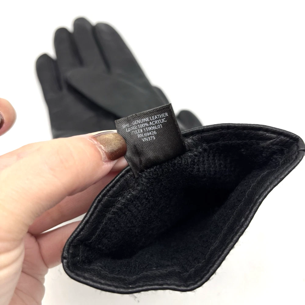 Coach Signature Black Leather Tech Gloves for Women Size 7 with Logo Embossed