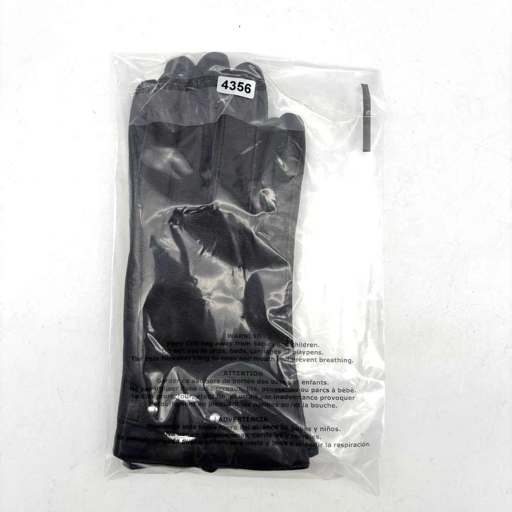 Black Genuine Leather O-Ring Stud Wrist Gloves for Women
