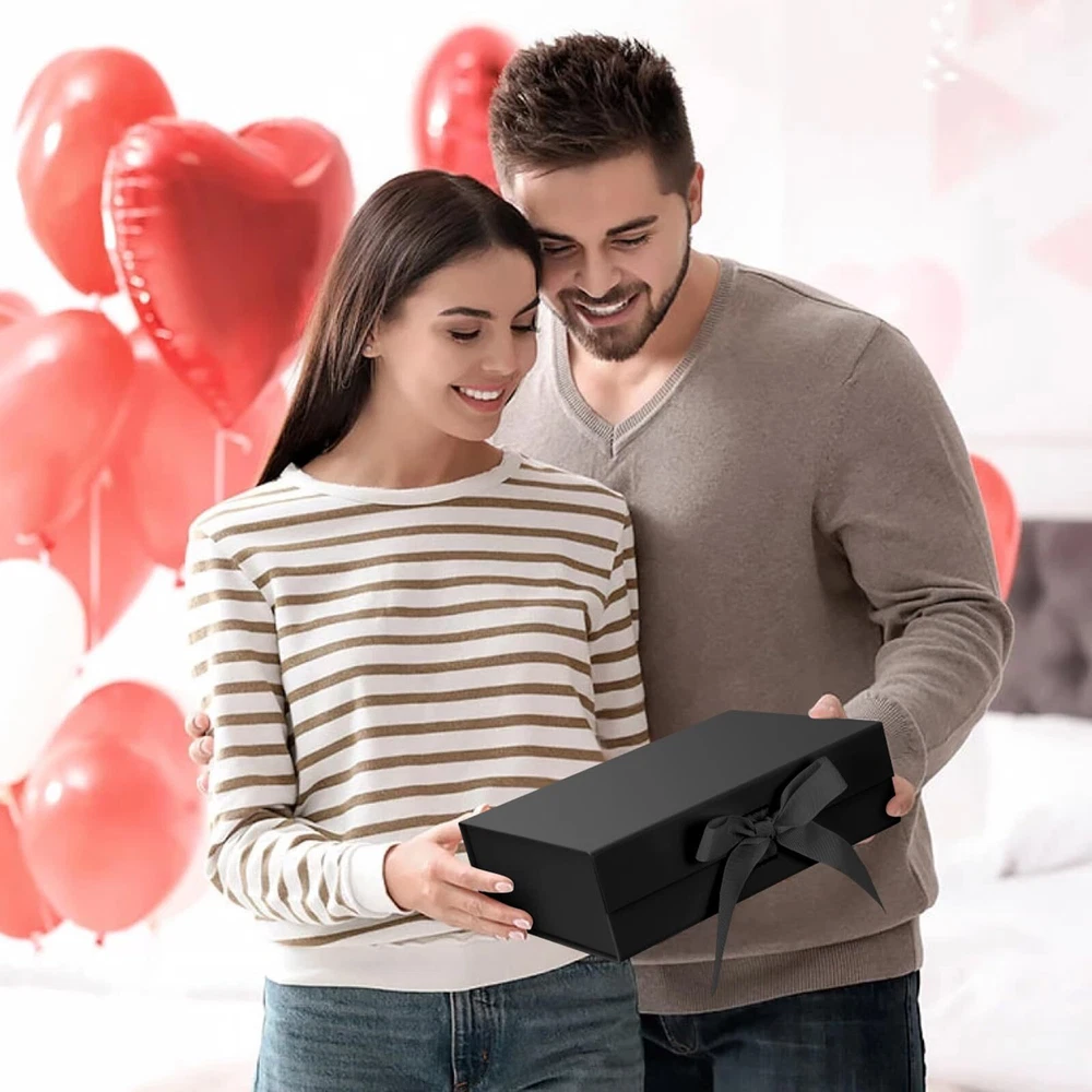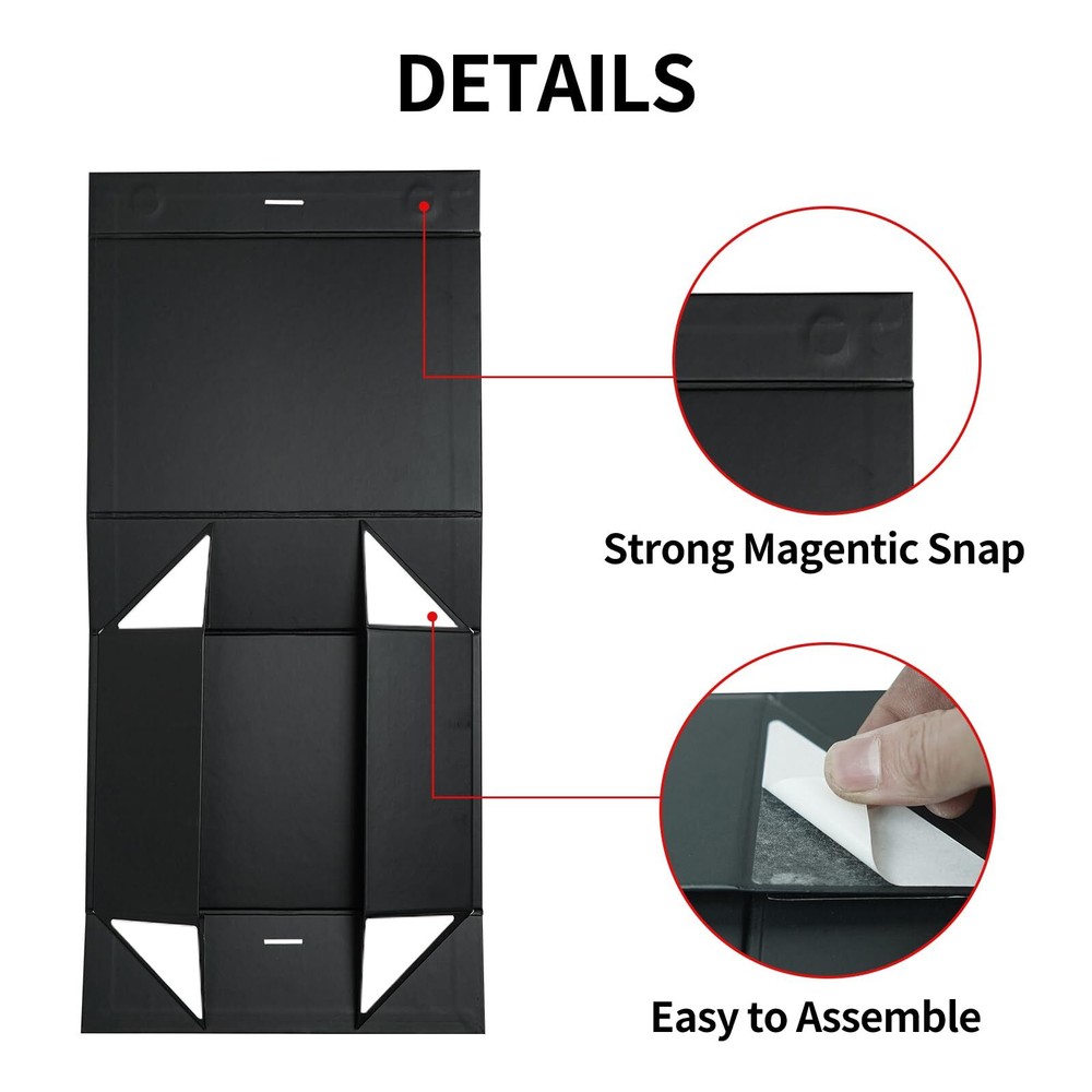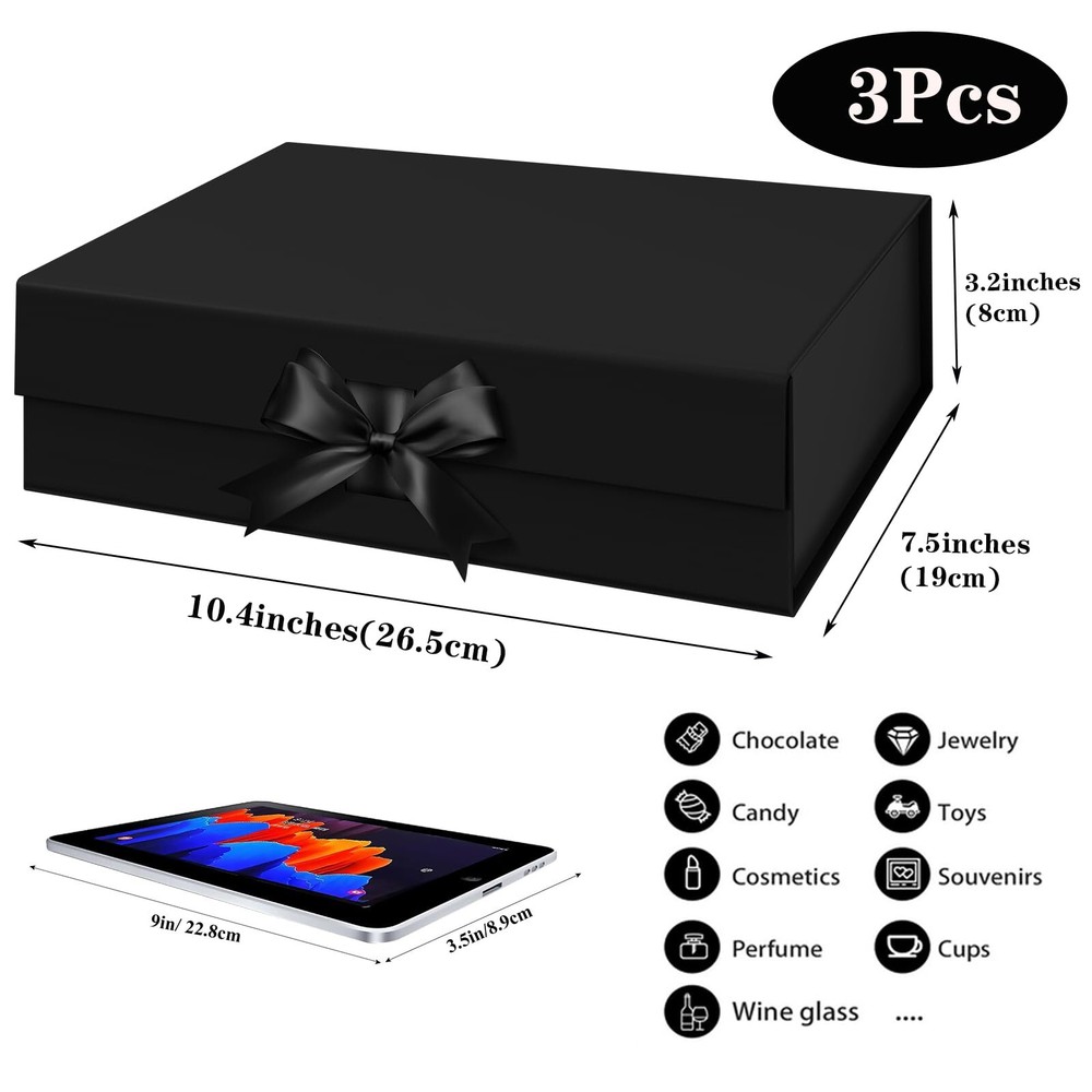 Black Gift Boxes 3 Pack 10.4x7.5x3.1" Collapsible Mother's Day Graduation