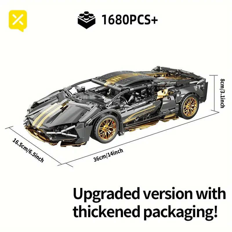 lack Golden Bull Super Sports Car Building Brick Model Toy – Resin Construction | Ultimate Gift for Car Lovers Unleash your inner car enthusiast with this 1259-piece Black & Gold Bull Super Sports Car Building Brick Model Toy – a stunning, high-detail replica made with durable resin construction . Designed for collectors, adult hobbyists, and young builders alike, this set offers an exciting challenge and an eye-catching display piece once completed. 🔧 Product Features: 🔥 Bold Black & Gold Design : Sleek, sporty, and aggressive – inspired by high-performance supercars. 🧱 1259 Precision-Crafted Pieces : Delivers a rewarding build with realistic curves and intricate details. 💎 Durable Resin Construction : Stronger than typical plastic bricks – ideal for long-term display or play. 👨👩👦 For All Ages : Fun for both adults and kids (recommended for ages 8+ with adult supervision). 🎁 Perfect for Gifting : A top-tier gift idea for Halloween, Thanksgiving, Christmas, birthdays, or any special occasion. 🎁 Ideal Gift For: Car lovers and supercar fans LEGO® and brick-building hobbyists Teen boys, adult builders, and collectors Holiday gifting and special occasions 📦 What's Included: 1259 resin brick pieces Easy-to-follow instruction manual Comes in a secure, retail-friendly box (perfect for gift-giving)
