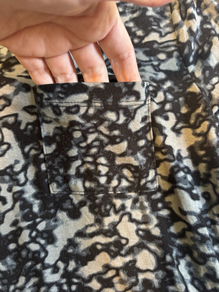 Love this top! The rayon-spandex blend makes it super soft and stretchy, while the V-neck and long sleeves give it a chic, polished look. The front pocket is a nice touch—great for storing small essentials. Fits true to size, drapes beautifully, and works for both casual outings and dressier occasions. The gray color is versatile and pairs well with anything. Comfy yet stylish—definitely a wardrobe staple!