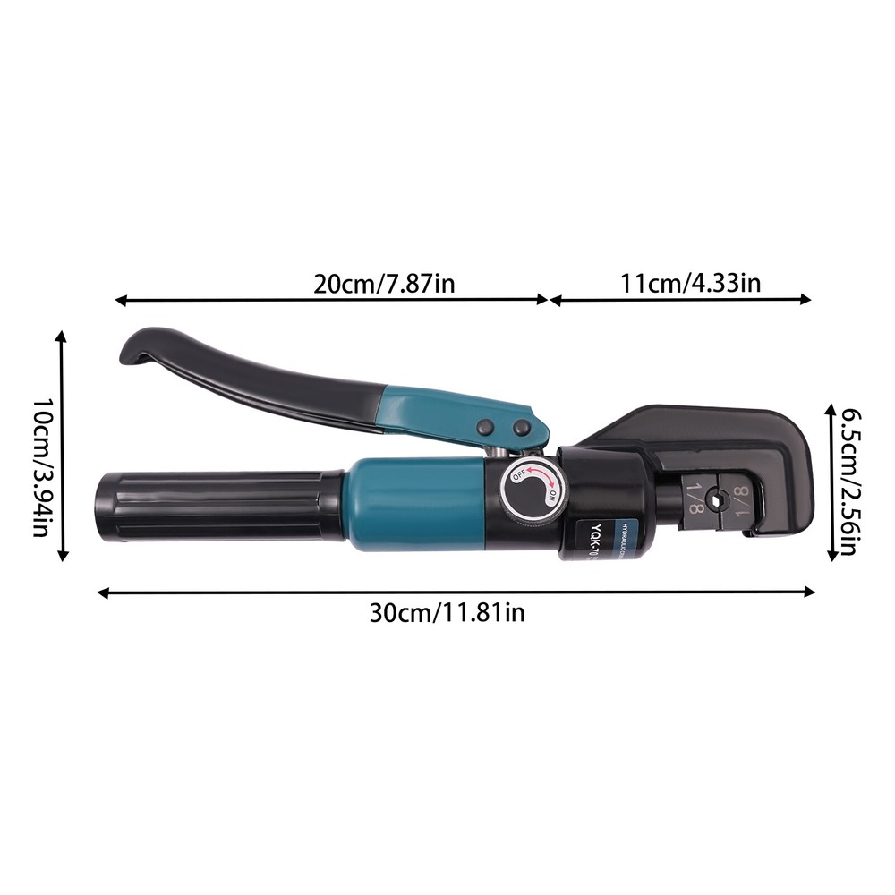 Black Handheld Hydraulic Crimping Tool,wire Crimping Tool With Pair 1/8" Dies Welcome~ Description Our hydraulic crimping tool can help you efficiently complete crimping work. Its hydraulic device can generate a pressure of up to 6T and can crimp multiple specifications of copper aluminum terminals, with a good crimping effect and fast speed. The toolbox allows you to take it wherever you want, making it convenient and effortless to use. Key Features Made to Last: This product is made of high-quality cast iron and plastic that have been polished, electroplated, and sprayed. It has high density and is not easy to break with long service life. High Efficiency: This product adopts a dual-speed oil inlet design, and the plunger adopts a leak-proof oil seal, which can quickly generate a hydraulic pressure of 6T, ensuring secure and reliable connections even for larger wire gauges and heavy-duty cables, greatly improving your working efficiency. Adjustable Pressure: The oil switch knob is designed to effectively control the pressure during crimping. You can adjust the appropriate pressure according to the crimping object. Complete Set: The crimper and a pair of standard 1/8-inch dies make a complete kit to meet your crimping needs without you having to purchase additional ones. High Adaptability: This product has a crimping range of 4-70mm², so you can also configure the dies from 4-70mm² according to your needs. It is highly adaptable. Convenient Assembly: It uses a C-shaped guide groove design for the crimping head, which is more convenient for installing dies and can better fix them without easy misalignment. Easy to Carry : This product is equipped with a toolbox with slots to hold the tools, allowing you to take them to the desired place without worrying about damage or loss. Effortless Cleaning: It has a smooth surface and an open structure, so you only need to wipe the dust or residue with a towel. Good Customer Service: We aim to provide quality products and services. If you have problems, please feel free to contact us. We will reply and solve the problem for you as soon as possible. Details Oil Seals: In case of oil leakage in the product, you can directly replace the internal oil seal to ensure its sealing and performance. Comfortable Handle: The ergonomic and comfortable handle makes it easy to grip and control. Application This product is widely used for crimping copper and aluminum terminals for various occasions and projects, such as power industry, bridge construction, power repair, site construction. Specification Model: YQK-70 Material: Cast Iron, Plastic Process: Polishing, Electroplating, Spray Molding Color: Black Crimping Form: Hexagonal Assembly Required: Yes Operation Mode: Handheld Applicable Material: Copper Aluminum Terminals Number of Dies: 1 Pair Output: 6T/13227.74lbs Stroke: 10mm/0.39in Crimping Range: 4-70mm² Die Specification: 1/8" Crimping Head Size: 11*6.5cm/4.33*2.56in Handle Length: 20cm/7.87in Product Size: 30*10cm/11.81*3.94in Package Size: 36*17*10cm/14.17*6.69*3.94in Gross Weight: 2.4kg/5.29lbs Net Weight: 2.3kg/5.07lbs Package Included 1 * Hydraulic Crimping Tool 1 * Tool Case 1 Pair * Dies (Already Installed) 4 * Oil Seals 1 * English Manual Notes Please read the operating manual completely before use. And pay particular attention to the safety instructions included. It is strictly prohibited to start crimping without installing the die to avoid damaging the product. Please note that when you find the crimper could not provide enough pressure, please check the knob and make sure it is fully tightened or needs further tightening up. Please allow the slight color difference caused by the shooting light and 1-3cm error due to manual measurement, and make sure you do not mind before ordering. tu1 Payment Delivery details Terms of sales About us Contact us Payment We accept ebay payment 。 Fees such as import duties, taxes are not included in the item price or shipping costs. These charges are the buyer's responsibility. Delivery details Shipping: 2-9 working days to: USA Terms of sales We maintain high standards of excellence and strive for hundred percent customer satisfaction. Feedback is very important to us. We hope that you contact us immediately before you give neutral or negative feedback, so that we can address your concerns. It is impossible to address issues if we do not know about them! About us Your satis faction is our ultimate goal. We work hard to earn your trust and future business. Our certified technicians have tested each item before shipping. The unit comes with 1 year limited warranty on all manufacturing defects. a) If you receive a defective item, you may return it or ask for a discount. Please contact us within 14 days after you receive the package. b) What you returned must be intact and in its original packaging as re? u. Customer is responsible for shipping costs of the returned item. c) We will cover the cost of shipping back t with the shipping rate indicated in the registration page. We will send you a new unit or refund the full payment you paid. Thank you. Contact us Business Hour Business Hour: Monday To Friday: 8:30 AM to 5:00 PM (Beijing China time) Due to time zones, our reply to your questions may not be immediately. But within above working time, we will reply your email within 24 hours. If it's non-workdays, please kindly be patient and wait till Monday. Please contact us with ebay message. Please feel free to contact us if you have any questions. Monday To Friday: 8:30 AM to 5:00 PM (Beijing China time) Due to time zones, our reply to your questions may not be immediately. But within above working time, we will reply your email within 24 hours. If it's non-workdays, please kindly be patient and wait till Monday. Please contact us with ebay message. Please feel free to contact us if you have any questions. shipping notice Can not ship to Puerto Rico,Alaska/Hawaii Feature Compact Design,Unique Appearance Type Hydr