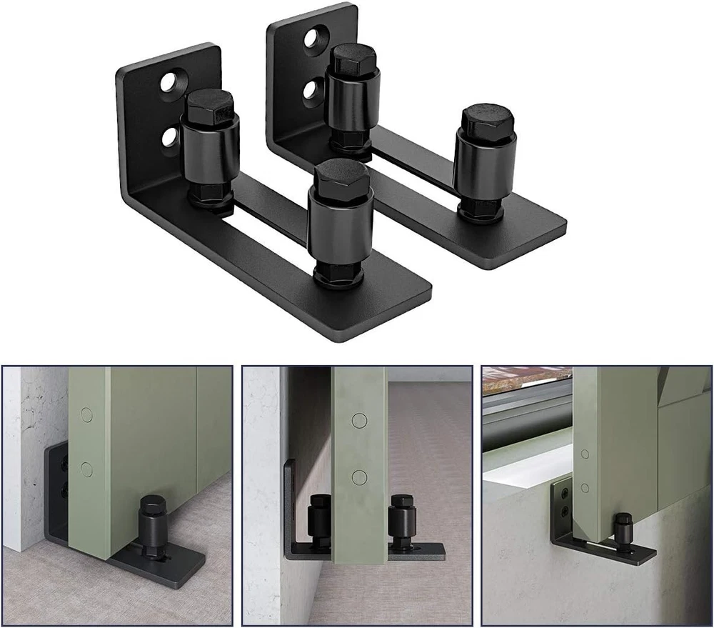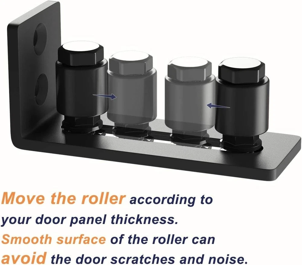 This barn door floor guide roller set is a game-changer! The solid steel and POM nylon construction feels incredibly durable, and the frosted black finish looks sleek. Installation was a breeze—no fuss, just smooth sliding right out of the box. The rollers fit perfectly on doors up to 1 15/16” thick, keeping everything stable and silent. Plus, free shipping arrived faster than expected. Highly recommend for anyone upgrading their barn doors!