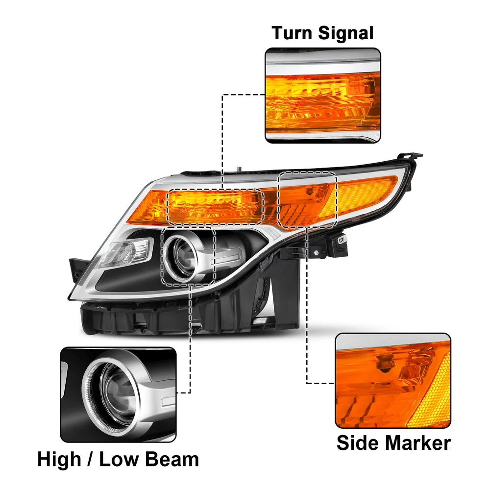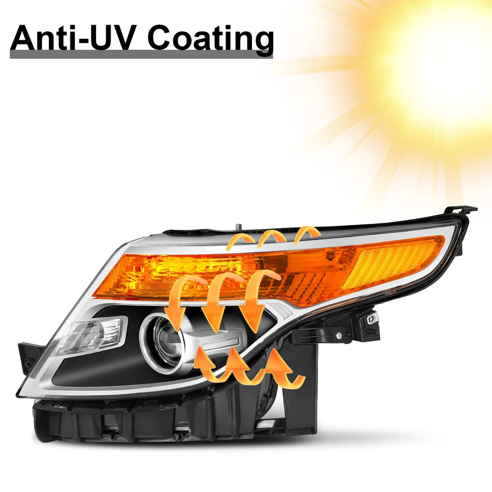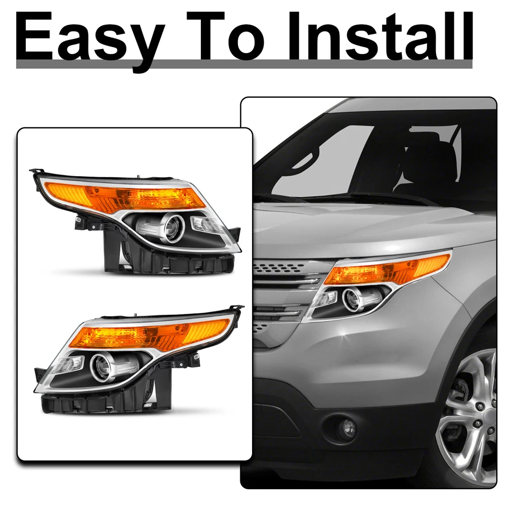 Black Housing Amber Corner Projector Headlights W/Bulbs For 11-15 Ford Explorer Features: 1.Direct replacement for stock assemblies 2.Comes in pairs with driver & passenger sides (left & right) 3.DOT and SAE compliant with quality meeting or exceeding OEM units 4.Comes with bulbs to save your money and time 5.All Headlight Lenses come with anti-yellowing/ageing coating 6.1-Year limited warranty Specification: High Beam Bulb: H7 ( Bulbs are included ) Low Beam Bulb: H7 ( Bulbs are included ) Turn Signal Light: 3457 ( Bulbs are included ) Black Housing Clear Lens Amber Reflector Compatible with: 2013-2015 Ford Explorer Sport 2011-2015 Ford Explorer BaseXLT Limited Only Compatible with Factory Halogen Headlight Models Not Compatible with Factory HID/Xenon Headlight Models Package includes: 1 Pair of headlights Payment Shiping Policy Returns Policy Feedback Contact us Payment We accept PayPal, Google Pay, Credit Cards, and Debit Cards. Shiping Policy All Orders Will Ship Within Two Business Days.Except PR,HI,AK,GU and PO Box addresses. No local pick up All Packages Will Be Inspect Before Shipping, We Will Provide All Packing Material Needed For Your Package For Shipping Such As Boxes, Cushioning And Tape To Improve Shipping Quality. Very Important: Double check shipping address. We are not responsible for incorrect or undeliverable addresses. Returns Policy 60 Days returns satisfaction guarantee. All of Our Items Are 100% Brand New. If The Item Shows Up Defective or Broken, Please Contact Us Within 3 Business Days By Using "Ask A Question" Link Located At The Bottom of Our Listing. Your Questions/Concerns Will Be Responded Within 12 Hours Monday To Friday. Buyers May Contact us On The Weekends or Pubic Holidays And We Will Respond On The Next Working Day. We Will Offer Replacements, Exchange or Full Refund. 100% Satisfaction Guaranteed. We Will File Damage Or Lost Claim For Our Buyers Feedback We will leave a positive feeback immediately after payment is received. We appreciate a positive feedback as much as you do. If you have any issue with order,pls. contact us before leaving a feedback. We will glad to resolve your issue.Your satisfaction is our priority. Contact us If you have any concerns, Pls. feel free to contact us at any time.