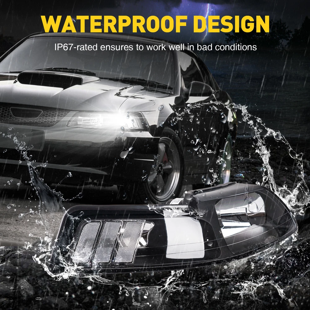 DESCRIPTION PAYMENT SHIPPING RETURN POLICY CONTACT US BLACK HOUSING CLEAR CORNER HEADLIGHTS FOR FORD MUSTANG 1999-2004 GT/COBRA EURO Features: These direct aftermarket replacement headlight assemblies are 100% OE standard, produced by suppliers from the automotive OEM market and are SAE/DOT approved. Please note that bulbs are not included KAC replacement headlight assemblies exactly match the specifications of the original manufacturer's design and no modification is needed. Wiring, switch and screws not included The beam level can be adjusted with adjusters. Made with the highest grade components for premium reliability and performance, offers enhanced visibility and meets all relevant safety standards Clear lens for superb clarity, IP65-rated water-resistant and durable to withstand all weather conditions, with vent holes in the housing to avoid moisture and fogging problems Product Description Designed for: 1999-2004 For ford Mustang Lens color: Clear headlight/Amber side marker Part replaces these OE numbers: YR3Z13008AA YR3Z13008BA Y3R3Z1300 Bulbs: Low Beam, High Beam(Bulbs NOT included) Specifics and Features: Plug-n-play operation, Direct bolt-on OE fitment or replacement for the stock unit Comes with a complete set of headlight (driver and passenger side) Brings a different appearance to veichle that great for show use or to replace old and worn headlights Requires no modificaion or drilling KAC original replacement headlight assemblies are made from premium components and manufactured to the highest standards. This replacement fog light assembly offers reliability and long-lasting performance. The clear lens offers enhanced road illumination and improved visibility. Item Specifics Brand KAC Type Bulb, Headlight Assembly, Lens, Reflector Manufacturer Part Number 1999 2000 2001 2002 2003 2004 FO2503160 Replacement Signal LH RH Interchange Part Number 99 00 01 02 03 04 YR3Z13008AA YR3Z13008BA Y3R3Z1300 FO2502160 Set Installation Guide Not Included; Professional installation is highly recommended Lighting Technology Halogen Fitment Type Direct Replacement Bulbs Included No Quantity 1 x Pair of Head Lights (Driver Side LH +, Passenger Side RH) Placement on Vehicle Front, Left, Right Headlight Style Factory Housing Color Black Lens Color Clear Features Factory Headlights, OE-Certified, SAE-Certified, Sealed Assembly Assembly Type Composite Beam Type Low Beam, High Beam Notes Does Not Include Bulbs & Wiring - Reuse Your Own Factory Bulbs Specifics Replacement Headlights Compatible/Replacement For For 1999-2004 Ford Mustang Reflector Color Clear Payment Shipping Return Policy Contact Us About Warranty 1) we accepts all major credit cards via PayPal: MasterCard, Visa, American Express and Discover. 2) We will only ship to the confirmed PayPal shipping address given with the payment. Please make sure your PayPal and eBay address is correct. If not, please correct it before payment. Thank you. 3) If you want to ship to another address, please change your PayPal shipping address before you make payment. 4) To avoid initiating an unpaid item claim, please pay within 7 days. 5) Custom duties, taxes, or charges are not included in the cost you pay to us. We only ship this item to United States ! 1. We ship to your eBay address. Each package will be shipped by UPS or Fedex with tracking number. 2. Ship within 1 business day once payment completed. Orders placed on weekend will be shipped within 3 days. 4. Seriously promise: Refund or resend will be offered if item still not arrive in 7-10 business days. Just send us an email ,we will give you a satisfied solution as soon as possible. If you send us an e-mail, it will be answered within 48 hours during our working hours. Please feel free to contact us if you have any questions: Dear my friend,we appreciate your support.And our goal is service you well and give you a pleasant shopping time in our store. ✅Dear customer, when you want to return or exchange goods (Please contact us first, instead of directly initiating a dispute) 1: Contact the seller first 2: Send pictures: outer packaging&scanned labels&item itself&with complete accessories, etc necessary condition Rule A: The original packaging of the item is in an unused state. Rule B: The outer packaging must not have any damage. 3: Obtain return label 4: Delivered Projects - Payment Repayment ✅A 15% restocking and shelving fee will be charged for returns or exchanges that are not caused by the seller and are in good condition. Exchange will not charge restocking fees or shipping fees due to transportation errors ✅Priority In case of the following reasons, the freight will be borne by the buyer 1: Unexpected order 2: Find a better price 3: Change your mind 4: Buy more items/make mistakes/misread model information ✅Please note Missing accessories/quality issues/transportation damage, etc Please contact us first to obtain a good solution, rather than directly opening a return dispute. Thank you very much for your understanding. I hope we have a pleasant cooperation! Contact us if you have any question, Give us a chance to serve you, negative feedback could not solve anything, communication Please! ❎ (NO) Three stars is LOW star, NO 1,2,3 stars PLEASE! ✅(YES) Please give us Five-star! Have Question or Problem?? Step 1: Contact seller Step 2: Select the 1st topic: I have a question about using my item or I want to send the seller a message. NO others please! Step 3: Describe your question clearly; we will give you the best solution Please leave five stars positive feedback positive comment and Five-Stars. * We maintain a high standard of excellence (5 star rating) and strive for 100% customer satisfaction! * Feedback is very important to us. * We would like you to contact us immediately before giving us neutral or negative feedback so that we can address your concerns to our satisfaction. * If we don't understand these problems, we won't be able to solve them! * After understanding the