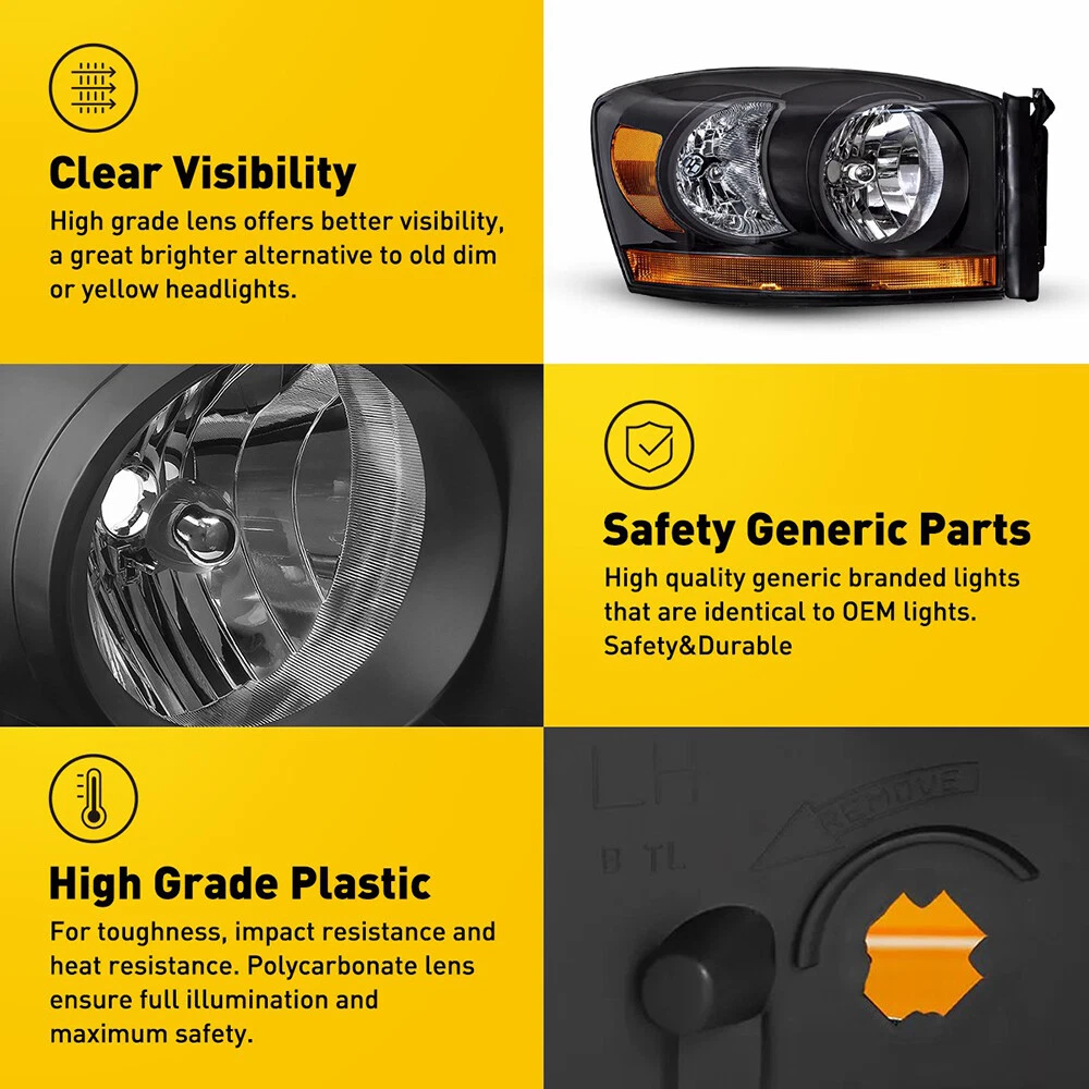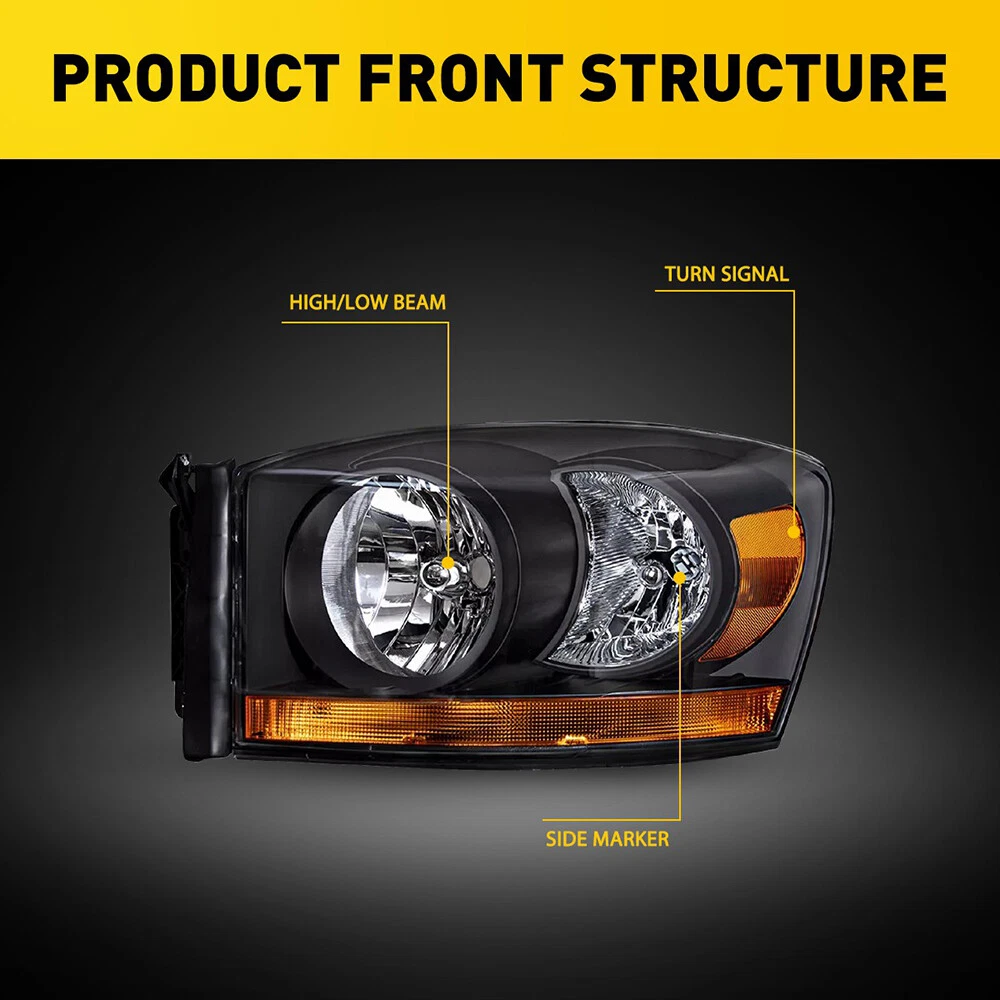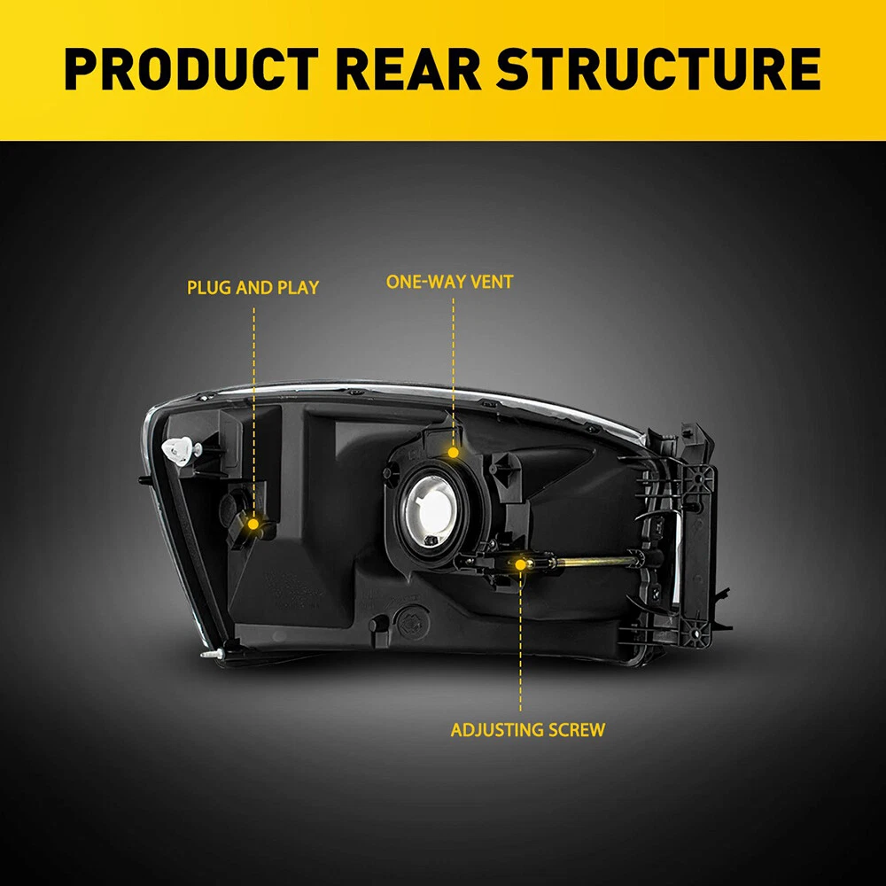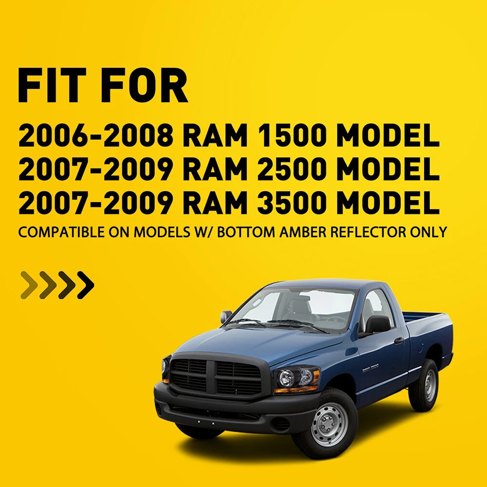 Fit for: 2006-2008 Ram 1500 Model 2007-2009 Ram 2500 Model 2007-2009 Ram 3500 Model Compatible on models w/ Bottom Amber Reflector Only Specifications: OE number: 55077794AB 55077795AB 55372815AB 55372814AB CH2518115, CH2519115 CH2518114, CH2519114 Material: ABS+PC (ABS Plastic Housing/Polycarbonate lens) Appearance color: 1.Housing Color: Black 2.Lens Color: Clear 3.Reflector Color: Amber Note: Projector ×(Not Include) DRL × (Not Include) Bulb × ( Not include) Features: *Easy to install: Black Housing Headlight Fit For 2006-2008 Dodge Ram 1500/2006-2009 Ram 2500 3500 Fit for: 2006-2008 Ram 1500 Model 2007-2009 Ram 2500 Model 2007-2009 Ram 3500 Model Compatible on models w/ Bottom Amber Reflector Only Specifications: OE number: 55077794AB 55077795AB 55372815AB 55372814AB CH2518115, CH2519115 CH2518114, CH2519114 Material: ABS+PC (ABS Plastic Housing/Polycarbonate lens) Appearance color: 1.Housing Color: Black 2.Lens Color: Clear 3.Reflector Color: Amber Note: Projector ×(Not Include) DRL × (Not Include) Bulb × ( Not include) Features: *Easy to install: Direct replacement, drilling and cutting are not required. *Superior quality: Made of ABS and PC materials with toughness and heat resistance functions to ensure its long service life and durability. *Angle adjustment: Equipped with a headlamp Angle adjustment knob, you can adjust the best Angle of view through the knob. *Suggestion: 1.Please confirm the OE number before purchasing!!! 2.Professional installation is required!!! Packaging include: Headlights*2 (Left+Right) Item Specifics Brand AUXITO Placement on Vehicle Front Left Right Housing Color Black Lens Color Clear Manufacturer Part Number 55372815AB 55372814AB 5507795AD 5507794AD Interchange Part Number CH2518115 CH2519115_2006 2007 2008 Reflector Color Amber Sku DDZC-RAM-06-08BR-BA Package Include Driver Side & Passenger Side [Headlight] Bulb Reuse Stock Bulbs to Install SAE DOT Compliant Yes Lens Heavy Duty Polycarbonate Dust and Moisture Protection Yes Return Free Return Shipping on damaged or defective items Headlight Style Factory Assembly Type Composite Lighting Technology Halogen Fitment Type Direct Replacement Number of Bulbs 0 Type Headlight Assembly Features DOT-Certified, SAE-Certified Material ABS PC (ABS Plastic Housing/Polycarbonate lens) Light Color Not include Bulb Items Included Headlights*2 (Left Right) OE/OEM Part Number 55077794AB 55077795AB 55372815AB 55372814AB Manufacturer Warranty 1 Year Universal Fitment No Superseded Part Number CH2518115, CH2519115 CH2518114, CH2519114 Payment Returns DESCRIPTION PAYMENT SHIPPING RETURN POLICY CONTACT US Shop Category Store Home LED Headlight ◈ H4 ◈ H13 LED Reverse Light ◈ T15/921/W16W LED License Plate Light LED Side Marker Light Car Parts & Accessories Tail Light assemblies Other Hot Item Picture New List Item Smoked LED Fender Bed Side Marker Light For Chevy 1500 Silverado 2500 3500 01-14 USD 25.64 Headlights Fits 2016-2018 Honda HRV HR-V Black Lamps Left+Right Pair 16-18 USD 138.69 FOR 15-20 CHEVY TAHOE SUBURBAN BLACK CORNER LED DRL PROJECTOR HEADLIGHT Left LH USD 132.99 Black Headlights Fit 2012-2015 Honda Civic Sedan 4-Door 2012 2013 Coupe Headlamp USD 104.49 LED Turn Signal Flasher Relay Fits For Chevrolet 2003-2006 Avalanche 1500 2500 USD 17.09 Help & Info Payment Policy Shipping Policy Return Policy FAQ About Us Black Housing Headlight Fit For 2006-2008 Dodge Ram 1500/2006-2009 Ram 2500 3500 Fit for: 2006-2008 Ram 1500 Model 2007-2009 Ram 2500 Model 2007-2009 Ram 3500 Model Compatible on models w/ Bottom Amber Reflector Only Specifications: OE number: 55077794AB 55077795AB 55372815AB 55372814AB CH2518115, CH2519115 CH2518114, CH2519114 Material: ABS+PC (ABS Plastic Housing/Polycarbonate lens) Appearance color: 1.Housing Color: Black 2.Lens Color: Clear 3.Reflector Color: Amber Note: Projector ×(Not Include) DRL × (Not Include) Bulb × ( Not include) Features: *Easy to install: Direct replacement, drilling and cutting are not required. *Superior quality: Made of ABS and PC materials with toughness and heat resistance functions to ensure its long service life and durability. *Angle adjustment: Equipped with a headlamp Angle adjustment knob, you can adjust the best Angle of view through the knob. *Suggestion: 1.Please confirm the OE number before purchasing!!! 2.Professional installation is required!!! Packaging include: Headlights*2 (Left+Right) Payment Returns All rights reserved. On Dec 18, 2024 at 14:26:40 PST, seller added the following information: