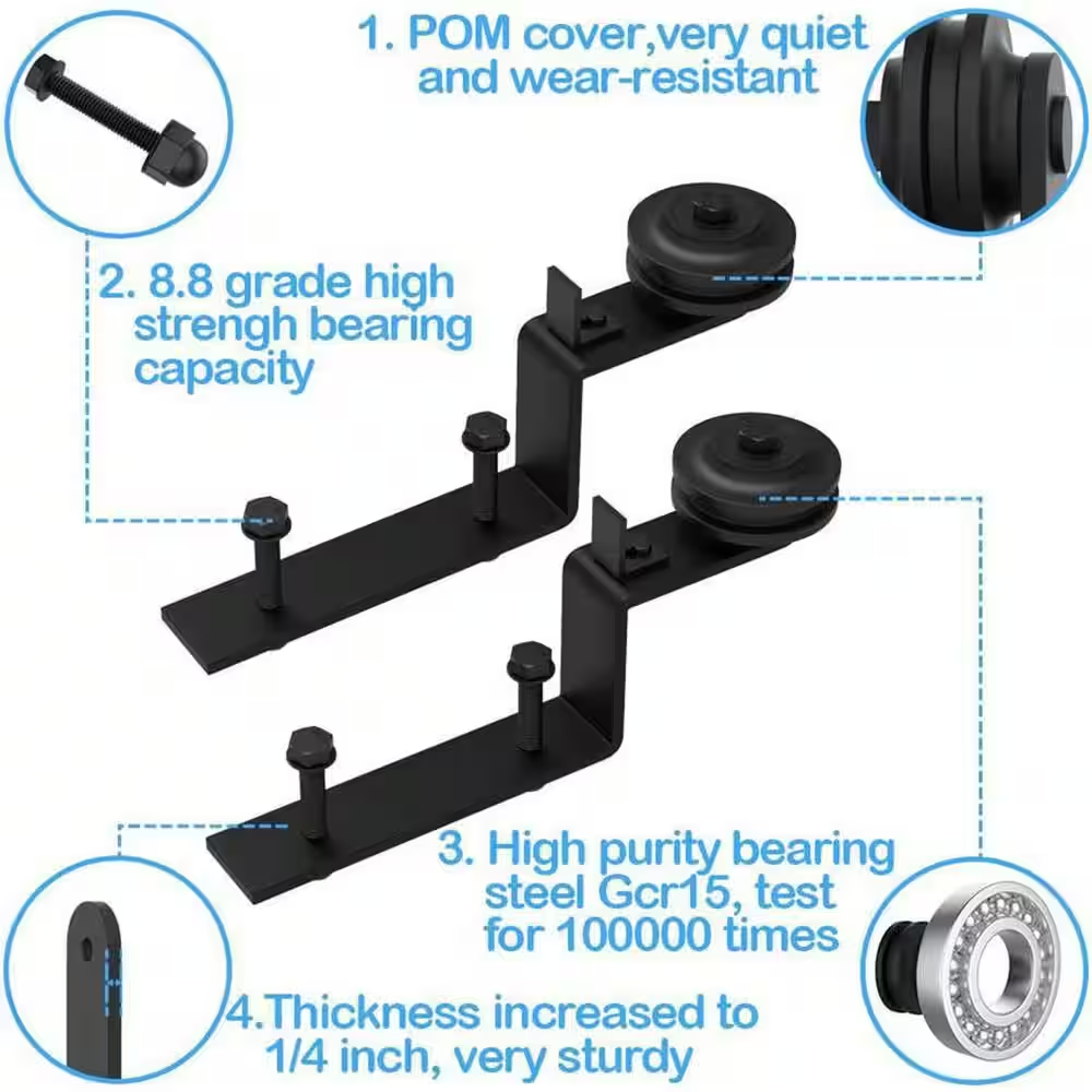 Fast Shipping On All Items 30 Days Money Guarantee Customer Support Excellent Service 100% Satisfaction Satisfaction Guaranteed Sliding Barn Door Hardware Hangers 2Pcs Black (I Shape Bent Wheel) Specification Builders Hardware Product Type Other Door Hardware Color/Finish Black Features No Features Hardware Color Family Black Hardware Finish Family Steel Material Steel Number of Doors No Door Included Returnable 90-Day Manufacturer Warranty 1-year warranty Product Depth (in) 2.75 in Product Height (in) 11.375 in Product Width (in) 2.95 in 2.95 inches x 2.75 inches x 11.375 inches. Item Description High-density plastic wheels ensure quiet operation Made of high-quality metal to resist rust and corrosion Classic design enhances the visual appeal WINSOON is a leading manufacturer of sliding barn door hardware. Craftsmanship, excellence and innovation are our primary pursuits. We enjoy the working with raw materials to make them into something extraordinary. Trustful quality and workmanship is what you can expect when you choose WINSOON. We lead the way in sliding barn door hardware and we invite you to create something unique. Package include: 2 x I shpae Bent Hanger, 4 x door bots, 2 x door Stopper, 2 x anti-Jump Pad, 1 x floor guide Suitable for 1 3/8 in.- 1 3/4 in. thick doors such as barn doors, closet doors, garage doors, garden sheds, wine cellars, etc. door Weight Capacity: 230 lbs, need a minimum of 5 in. clearance from the top of your door to the ceiling (or crown molding, if any) for this kit to fit correctly Sturdy material: made of high-quality metal material and coated with excellent powder, solid and well-made, with good rust and corrosion resistant Design: the classic and simple design will not be outdated, the balanced and smooth rail keeps the wheels rolling easily and guarantees the door not jumping out of the track, high density plastic wheels provide ultra-quiet experience, door stoppers keep the exact sliding range and the strong floor guide stabilizes door movement Hangers are 100% compatible with all track in WINSOON store ONLY the roller kit is for sale, track is not included, all the parts are available in our U.S warehouse, any product issues, please contact us firstly About us We offer the best prices around on high quality products. Our E-store includes media such as books, movies, music and games while offering electronics, toys, sporting apparel, clothing, tools, general home, garden items and more. Shipping We are always working hard to ensure your package arrives as soon as possible. Please understand that some factors like weather, high postal traffic, and the performance of shipping companies are outside of our control. We offer free shipping to the lower 48 states and ship within 2-3 business days of payment, usually sooner. We do not accept P.O. Boxes. Please provide a physical address. For shipping outside of the continental USA, we only use eBay's Global Shipping Program.The item is shipped to KY and then sent to the rest of the world. International customers are responsible for all duties and taxes. Continue to check out to calculate costs for shipping the item to your country. Messages regarding eBay's Global Shipping Program MUST be directed at eBay EXCLUSIVELY. Returns We offer a 30-Day Return Policy on items in which you are not completely satisfied with. You have the option of a full-refund or an exchange of the item. No returns are available on items shipped outside of the USA Satisfaction We try over very best to make sure every customer is completely satisfied. If there's a problem, message us! We're happy to help. Payment Options Shop With Confidence