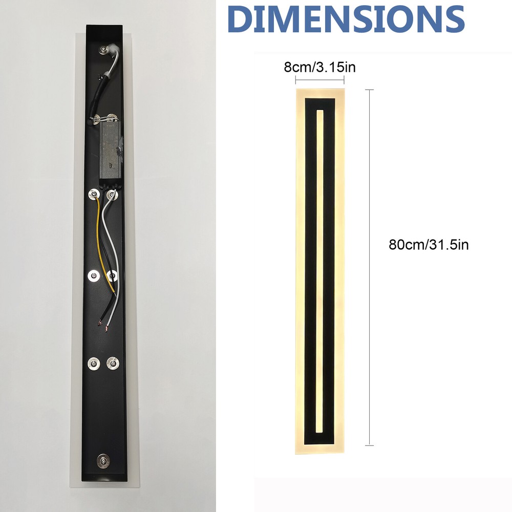 Department: Adults Shape: Rectangular Control Style: Wall Switch Backplate Size: 77*5*3cm/30.3*1.97*1.18in Material: Steel, Acrylic Light Color: Warm Brand: Unbranded Type: Wall Lamp Character Family: Does Not Apply Wall Light Size: 16*15*40cm/ 6.3*5.9*15.75in Surface Treatment: High Temperature Baking Paint Voltage: 95-265V Energy Star: A++ Lighting Technology: LED gtin13: Does not apply Style: Modern Light Temperature: 3000K Power: 22w Room: Hallway, Home Office/Study, Porch, Dining Room, Bedroom, Laundry/Utility Room Base Box Size: 4.6*3cm/1.81*1.18in Cord Color: Black Finish: Glossy UPC: Does not apply MPN: Does Not Apply Sensor Type: Does Not Apply Approximate Irradiated Area: 8-12㎡/86-130ft² Power Source: Hardwired Installation Area: Indoor & Outdoor Product Size: 80*8*4cm/31.5*3.15*in LED String/Strip Type: Does Not Apply Mounting: Wall Mounted Color: Black and White Features: Hollow Structure,Durable Material,Easy to Install Assembly Required: Yes EC Range: A++ - G
