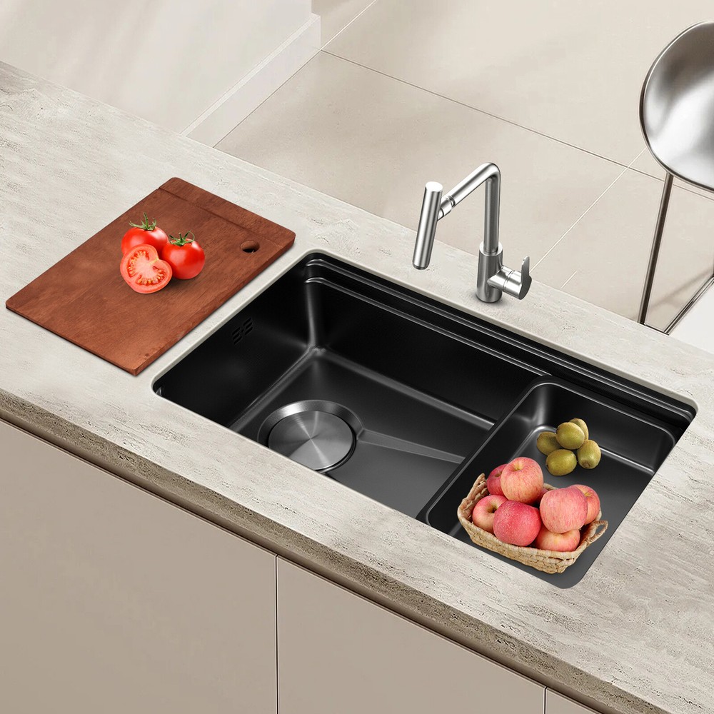 Application It can be suitable for quick use in commercial kitchens, but also widely used in homes, bathrooms, farms, backyards, garages, balconies, laundry rooms, indoor and outdoor, restaurants, bars, hotels, cafes, etc. It can be mounted either way above or below the counter top. Specification Style: Modern Color: Black Shape: Rectangular Drain Type: Grid Material: 304 Stainless Steel and Rubber Surface Treatment: One-piece Stretching Mounting Type: Above or Below the Counter Top Gross Weight: 11kg/24.25lbs Net Weight: 10.3kg/22.71lbs Package Size: 83*56*27cm/32.68*22.05*10.63in Product Size: 75*45*22.35cm/29.5*17.7*8.8 in Package Included 1* Kitchen Sink 1* Chopping Board 2* Hoses 1* Bag 1* Inner Basin Other Accessories for Assembly Black Large Capacity Stainless Steel Drop in Kitchen Sink with Chopping Board Welcome to our store~ Description What if there is not enough space in the kitchen sink? What do you do if the sink is always clogged and can't be cleaned all the time? Then I suggest taking a look at our kitchen sink with excellent material and easy cleaning features, which can easily solve the above problems and help you to create a more tidy kitchen. Key Features Last and Durable: Made of 304 stainless steel with a one-piece stretching process, it is not easy to fade, and can resist wear, corrosion, rust, impact, and deformation, so it can keep beautiful and practical indoors and outdoors . Thoughtful Design: The sloped bottom with a large drainage hole and V-shaped flow line allows water to flow to the drain promptly so that water does not accumulate at the bottom of the basin. In addition, the sound-absorbing rubber mat can effectively reduce the impact of water flow as well as reduce noise. The environmentally-friendly anti-vapour condensation spraying at the bottom prevents dripping and condensation, keeps the sink dry and avoids the deformation of the cabinet by moisture. Kitchen Assistant: Our product comes with a chopping board with a round hole for easy chopping; in addition, the removable inner basin makes it easy for you to clean your veggies, fruits, and more. The inner basin with a drain can be drained directly, which is convenient for you to use. Large Capacity: A large and deep (8.8-inch) sink provides enough space for cleaning, storage, and preparation for your daily use. Space Saving: The compact size (29.5*17.7*8.8 inches) and under-counter installation feature can save your kitchen counter space, creating a more convenient kitchen environment for you. Easy to Clean: Thanks to its smooth surface and simple construction, you can rinse and wipe with water at the same time, thus making it easy to clean. The R-shaped round corner of the basin eliminates the dead corner of dirt accumulation for easy cleaning. Complete Accessories: The combination of sink, hoses, chopping board, etc. can meet your various needs at once and also save you money. Quality Service: We stand behind all our guests and look forward to assisting you with your purchase. It is our pleasure to answer your confusion and questions. The end of the story between us is definitely not "we sell and you buy" Details Practical Hoses: They can help with smoother drainage . Well-designed Overflow Holes: They allow you to say goodbye to water spills and keep your kitchen as clean as possible. Filter Basket and Lid: Filter basket intercepts food scraps for easy disposal and prevents clogging. The lid helps block odors. Double-step Design: It allows you to easily place chopping board and drying rack. Application It can be suitable for quick use in commercial kitchens, but also widely used in homes, bathrooms, farms, backyards, garages, balconies, laundry rooms, indoor and outdoor, restaurants, bars, hotels, cafes, etc. It can be mounted either way above or below the counter top. Specification Style: Modern Color: Black Shape: Rectangular Drain Type: Grid Material: 304 Stainless Steel and Rubber Surface Treatment: One-piece Stretching Mounting Type: Above or Below the Counter Top Gross Weight: 11kg/24.25lbs Net Weight: 10.3kg/22.71lbs Package Size: 83*56*27cm/32.68*22.05*10.63in Product Size: 75*45*22.35cm/ 29.5*17.7*8.8 in Package Included 1* Kitchen Sink 1* Chopping Board 2* Hoses 1* Bag 1* Inner Basin Other Accessories for Assembly Notes Please measure the size of the sink in your home before purchase . Please note that this product does not include a faucet. Please allow the slight color difference caused by the shooting light and 1-3cm error due to manual measurement, and make sure you do not mind before ordering. Payment Delivery details Terms of sales About us Contact us Payment We accept ebay payment 。 Fees such as import duties, taxes are not included in the item price or shipping costs. These charges are the buyer's responsibility. Delivery details Shipping: 2-9 working days to: USA Terms of sales We maintain high standards of excellence and strive for hundred percent customer satisfaction. Feedback is very important to us. We hope that you contact us immediately before you give neutral or negative feedback, so that we can address your concerns. It is impossible to address issues if we do not know about them! About us Your satis faction is our ultimate goal. We work hard to earn your trust and future business. Our certified technicians have tested each item before shipping. The unit comes with 1 year limited warranty on all manufacturing defects. a) If you receive a defective item, you may return it or ask for a discount. Please contact us within 14 days after you receive the package. b) What you returned must be intact and in its original packaging as re? u. Customer is responsible for shipping costs of the returned item. c) We will cover the cost of shipping back t with the shipping rate indicated in the registration page. We will send you a new unit or refund the full payment you paid. Thank you. Contact us Business Hour Business Hour: Monday To Friday: 8:30 AM to 5:00 PM (Beijing China time) 