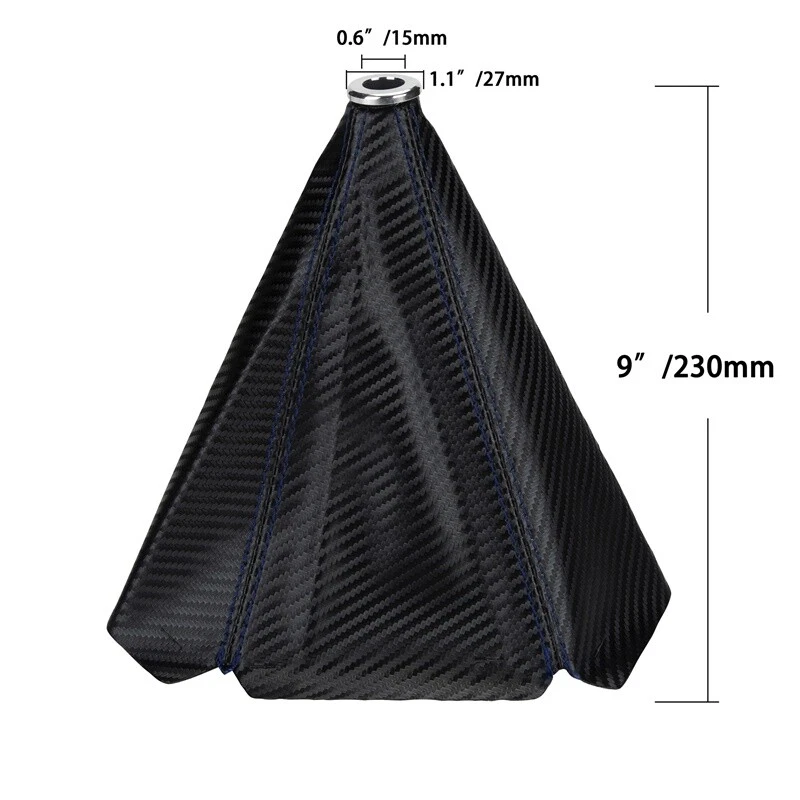 Description: Color: Black with blue stitch Material: L eather, metal ring Length: 230mm/9.06'' Bottom diameter: 190mm/7.48'' Metal ring inside diameter: 15mm/0.59'' Dust proof makes your car clean and tidy Easy to install and replace the original one Note: Please allow a little error due to manual measurement Fitment: Fit for most of cars Package includes: 1 X Car Shift Knob Boot Dust Cover