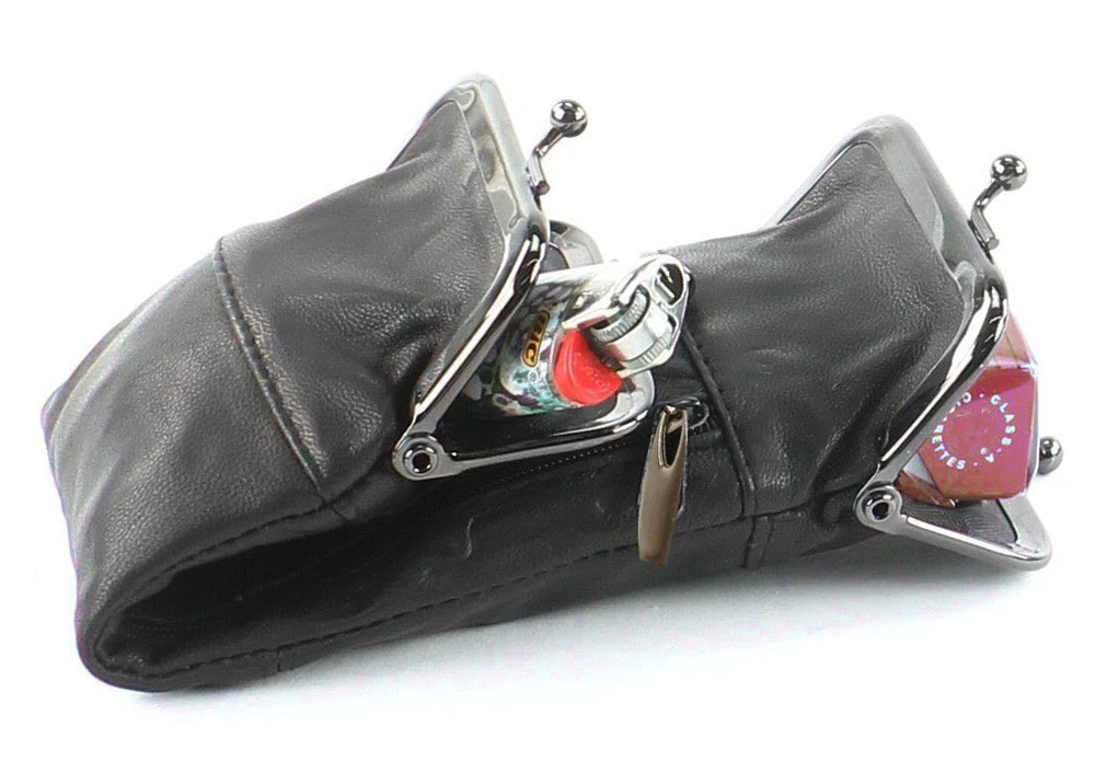 Black Leather Cigarette Case Lighter pouch Smoke 100's Regular Holder.
