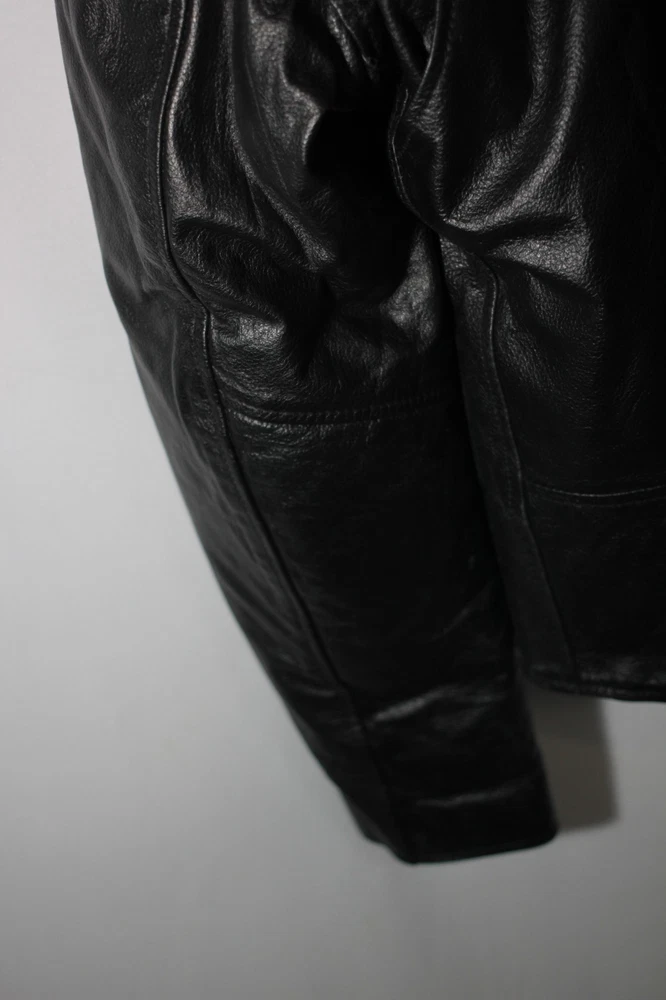 The Black Leather Motorcycle Biker Style Hawk Full-Zip Jacket is a stylish and durable outerwear piece designed for men who love the motorcycle lifestyle. Comes paded and made from high-quality leather with a polyester lining, this jacket provides both protection and comfort. The full-zip design and biker style give it a rugged and edgy look, perfect for those who want to make a statement with their fashion choices. Whether you're hitting the road or simply getting out of the cold, this jacket is a must-have for any motorcycle enthusiast. p2pXt2b 21X24