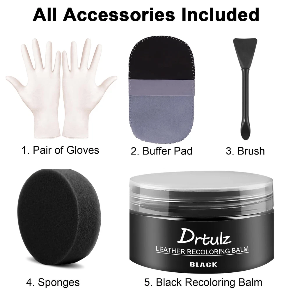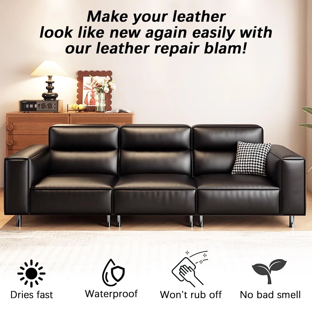 Car Leather Cleaner Leather Couch Cleaner Leather Restorer for Car Seats & Leather Boot Conditioner, Ideal As A Leather Cream for Sofas & Leather Sofa Polish HOW TO USE OUR LEATHER CONDITIONER FOR FURNITURE: In order to get the best results from our leather balm,please make sure the leather surface is clean, cool, dry and away from direct sunlight. Use the soft applicator pad to lather the cream gently. You can also use microfiber towels for best results. WHY CHOOSE OUR LEATHER CONDITIONER: ✔ Fast and Effective ✔ Easy to Use ✔ Useful for All Leather Products ✔ A Natural Formula [ Leather Recoloring Balm] Revitalize your cherished leather items with our advanced formula, designed to deeply penetrate leather surfaces to repair cracks, restore elasticity, and renew original texture. Leather balm seamlessly fills imperfections, giving your leather a like-new look and feel [ For Leather And Vinyl] Perfect for leather and vinyl car seats, steering wheels, sofas, shoes, boots, handbags, office chairs, wallets, belts, jackets, and all kinds of smooth leather products. Leather dye all-in-one kit meets diverse restoration needs for all your leather better, from automotive interiors to household items [ Black Leather Dye] This leather dye makes fast, easy DIY repairs. Repairs damaged leather, scratches, fading, general wear, and tear, peeling, and pet marks in one application. Dries fast, is waterproof, and won't rub off! And no bad smell [ Leather Repair Kit For Furniture] Black leather polish contains natural oils that can penetrate the pores of your leather to make your leather couches look shiny and new. Just apply it to leather, then apply and allow to air-dry for 10-20 minutes or use a hairdryer to speed up drying in just 1-2 minutes [ Leather Color Restorer] Leather scratch remover ideal for restoring color to faded and scratched leather. It’s odor-free, waterproof, and leaves no sticky residue. Super easy to use, it's easy to restore leather sofas, leather upholstery, or any genuine and fake leather product