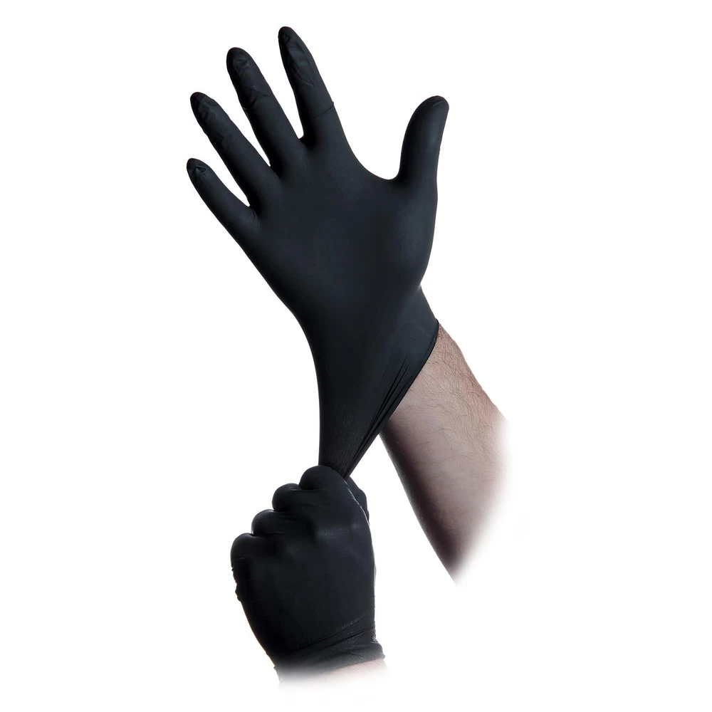 Unique formulation reduces excess perspiration. Made to match skin's natural 5.5 pH levels to ensure the most comfortable fit yet. Quadruple washed - no excess chemicals lingering on the glove. A high quality textured grip powder-free nitrile glove. Black Nitrile Gloves: Made of black nitrile, these disposable gloves are extra durable and designed to offer excellent barrier protection; Gloves are washed to remove any lingering chemicals Ultra Versatile: Powder-free gloves are perfect for use in a wide range of automotive, industrial & scientific work settings; Use as work gloves, medical gloves, mechanic gloves, tattoo gloves, and more Superior Strength and Stretch: Constructed from nitrile, these heavy-duty gloves are specifically designed with durability in mind Textured Grip: Firm-grip gloves feature a fully textured grip; Work gloves with grip help you achieve a firm hold on everything from medical equipment to tattoo supplies to automotive and plumbing tools Serious Protection for Max Productivity: Powder free and made without excess chemicals, these black disposable gloves offer serious protection from your work environment while keeping your hands in top condition for maximum productivity