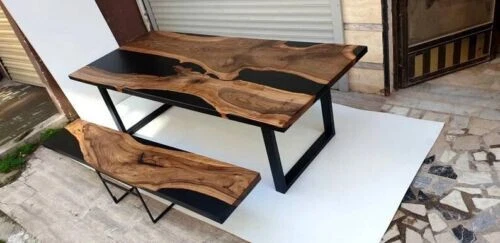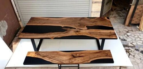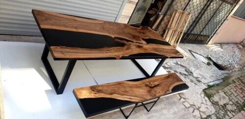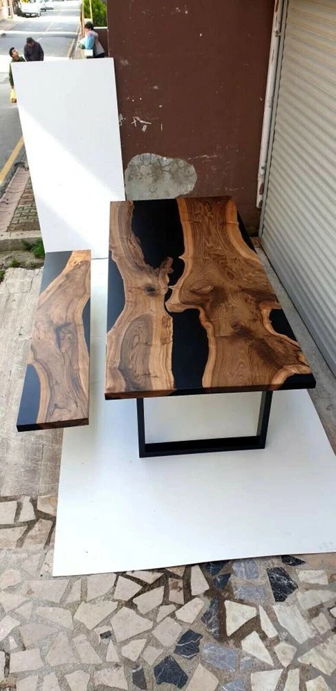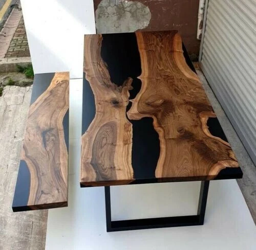 Black Live Edge Epoxy Coffee Table Top { No Bench } Epoxy Home Decor Top Table