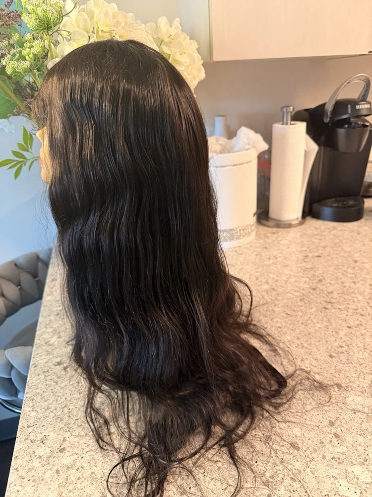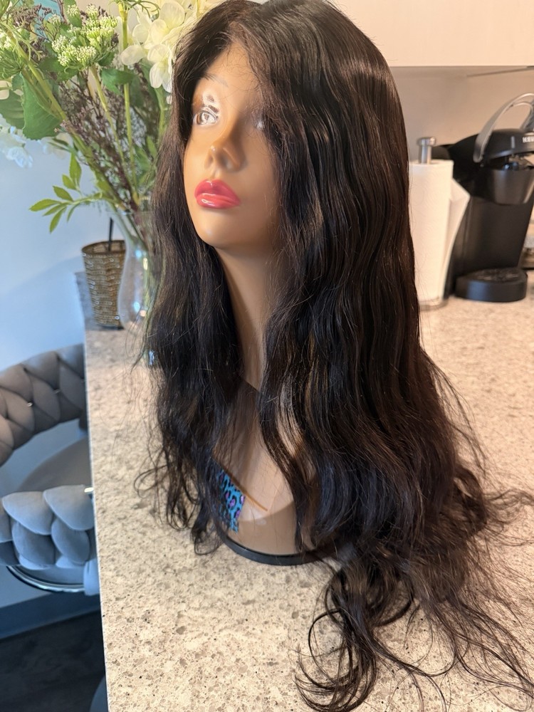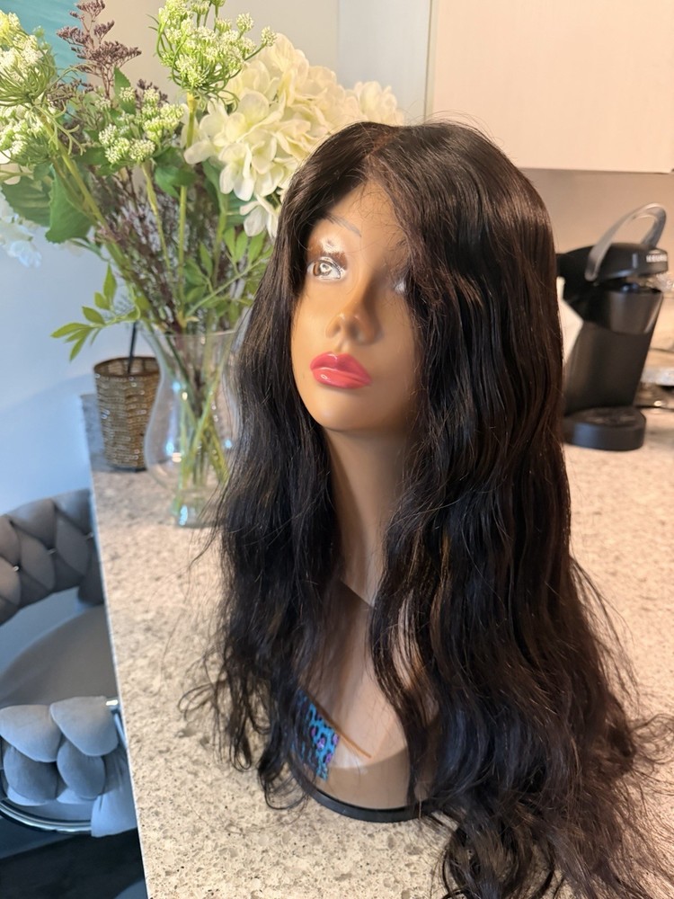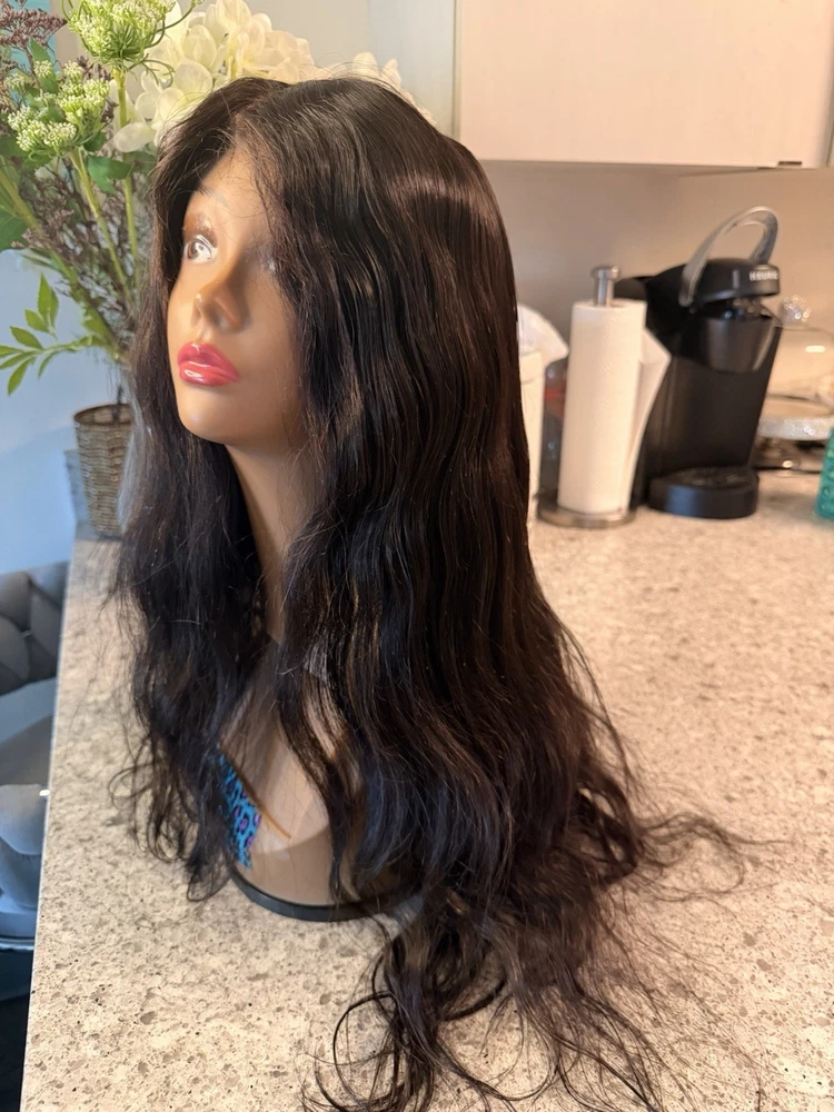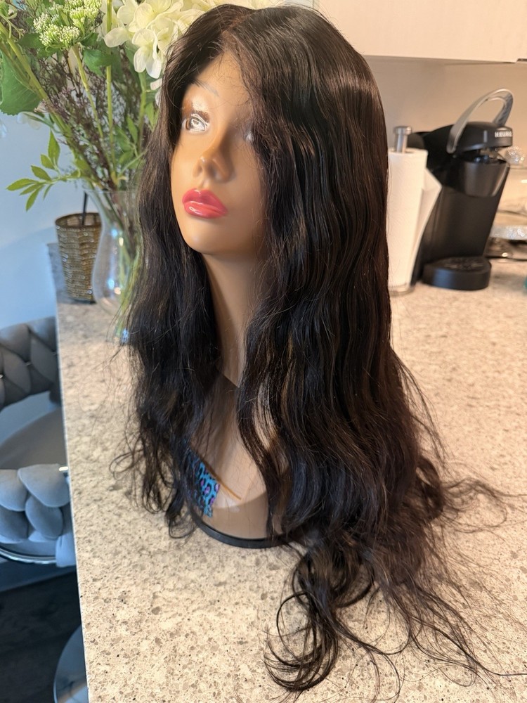 Hair Origin: Human Hair Hair Color Shade: Black Texture: Wavy Cap Construction: Lace Front Item Length: 24 in Brand: Unbranded Type: Wig