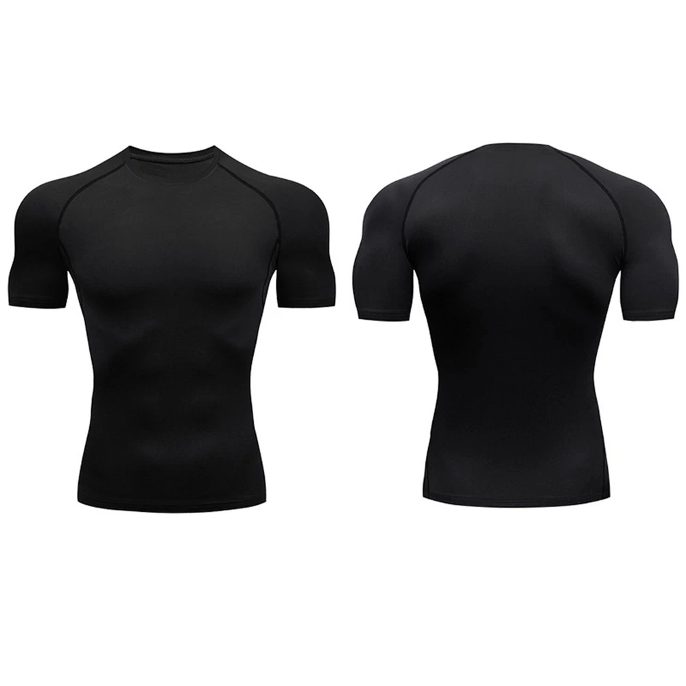 (Black L)Men's Cool Dry Short Sleeve Compression Shirts Sports T Shirt FA
