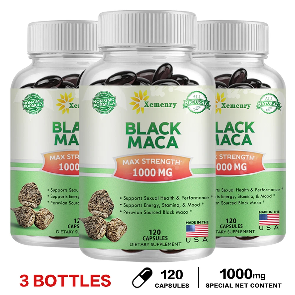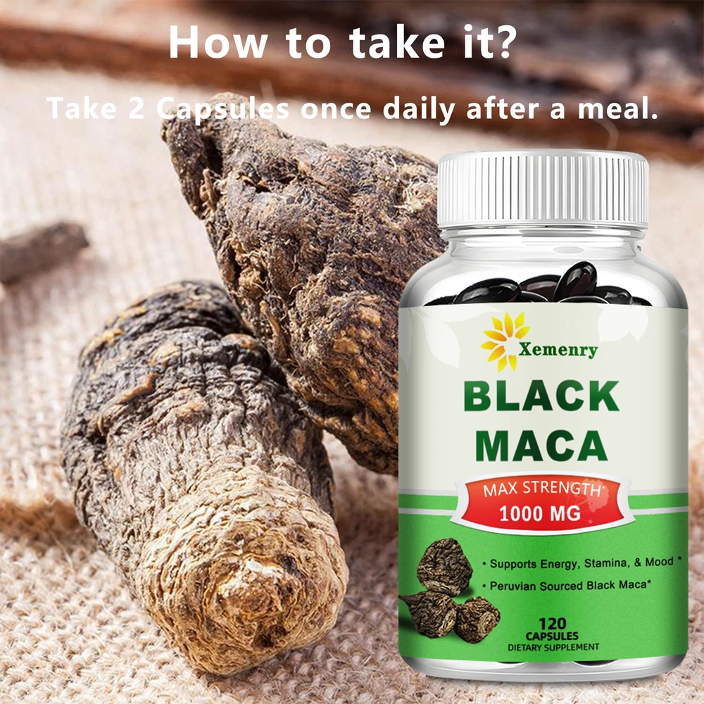 Effects: Testosterone Booster, Energy & Endurance Ingredients: Black Maca Directions: Take 2 capsules once daily after a meal. Shipping: Ships within 48 hours on working days. Shelf life: 2 years Description: Maximum Strength Black Maca: Black Maca is an herb native to the Andes Mountains of Peru. Peruvian Black Maca is superior to other forms of Maca because it contains more concentrated nutrients and is rich in metabolites and minerals. PREMIUM BLACK MACA: Black Maca helps increase energy, endurance and performance. Also aids in natural testosterone production. Supports muscle building and athletic performance, helps balance and maintain normal mood, and promotes mental focus and clarity. Our capsules are produced in a GMP certified facility and are third-party lab tested. All natural, non-GMO, vegetarian and contains no unnecessary fillers or binders. Document