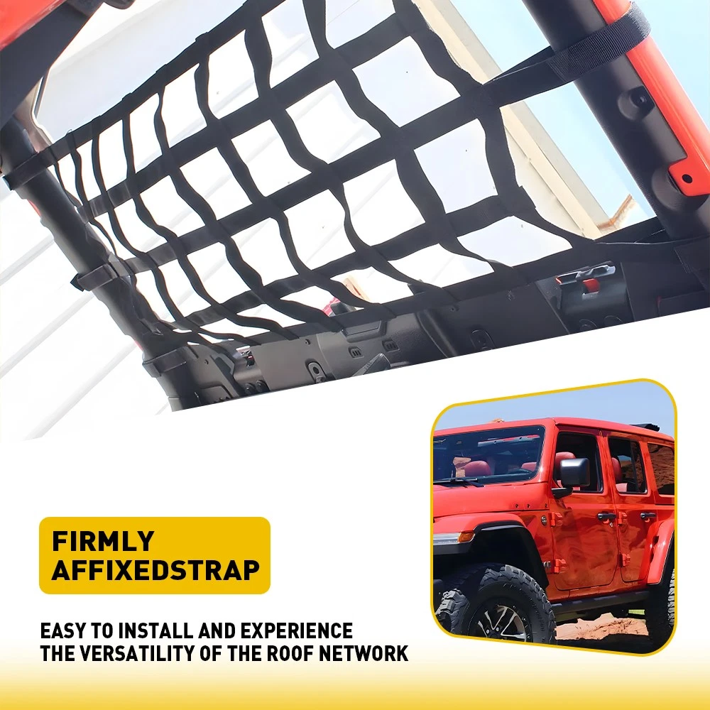 Black Mesh Cargo Net Auto Roof Net Hammock for Jeep Wrangler YJ TJ JK JL