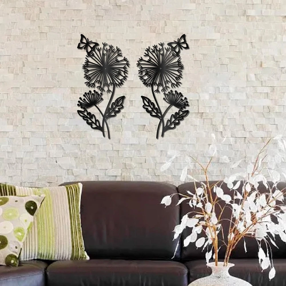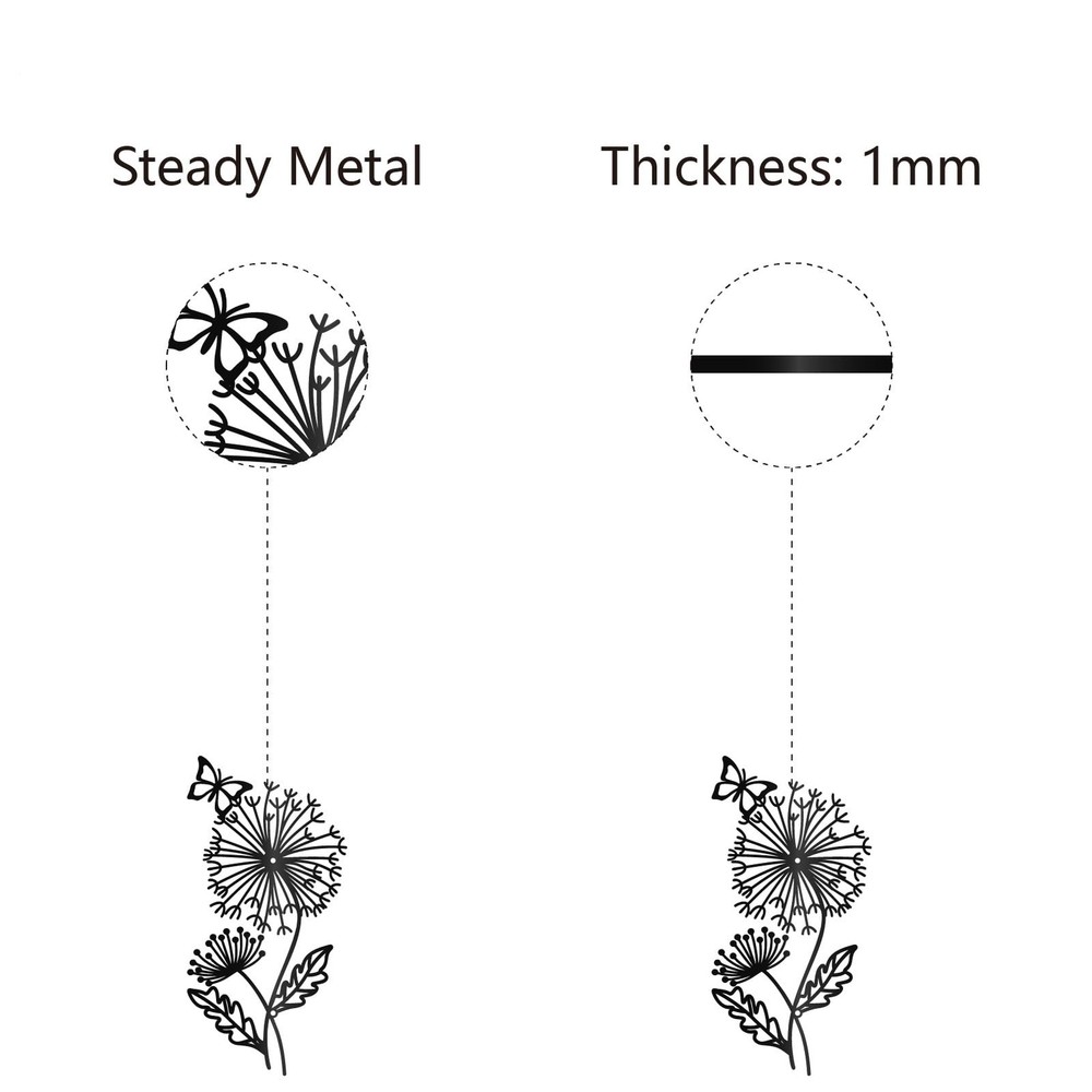 Black Metal Dandelion Wall Art Metal Plant Wall Decor Iron Hollow Butterfly Symmetry Silhouette Wall Artwork Sign Ornament Decoration for Living Room Office Garden Balcony 11.8 x 5.9 Inch Brand: Material: Iron Color: Black Size: 11.8 x 5.9 Inch/30 x 15cm, hole: 5mm, thickness:1mm Usage: Wall decoration Features : Dandelion metal decorations can add various accessories such as stickers, tassels, hooks, etc. Use your imagination to make unique decorations. Not only can you exercise your production ability, but you can also fully experience the fun of DIY during the production process Great Gift Idea: Metal butterfly wall decor is suitable for various occasions. You can give it to family, friends, neighbors, colleagues, etc. on holidays such as Christmas, Thanksgiving, Valentine's Day, birthdays, etc., so that they can better decorate their rooms Dandelion Wall Art: The black wall sculpture features a symmetrical dandelion pattern with butterflies on top. Pattern is exquisite, vivid, and has a unique charm, attracting attention Black Metal Sign: Come with 1 set dandelion metal wall art about 2pcs/set, 11.8 inch long, 5.9 inch wide (30 x 15cm), thickness: 0.1cm, hole: 0.5cm Good Material: The metal butterfly wall decor is made of high quality iron. Iron is sturdy and durable, not easily bent, with a smooth and burr free surface, suitable for long time decoration Easy to Install: Dandelion metal wall art installation is simple. Choose whether you want to decorate the wall, indoors or outdoors, and then use the accompanying screws to fix the metal decoration Multiple Uses: Metal butterfly wall decor is widely used and suitable for decorating bedrooms, living rooms, kitchens, balconies, corridors, street corners, restaurants, cafes, schools, offices, gardens, etc