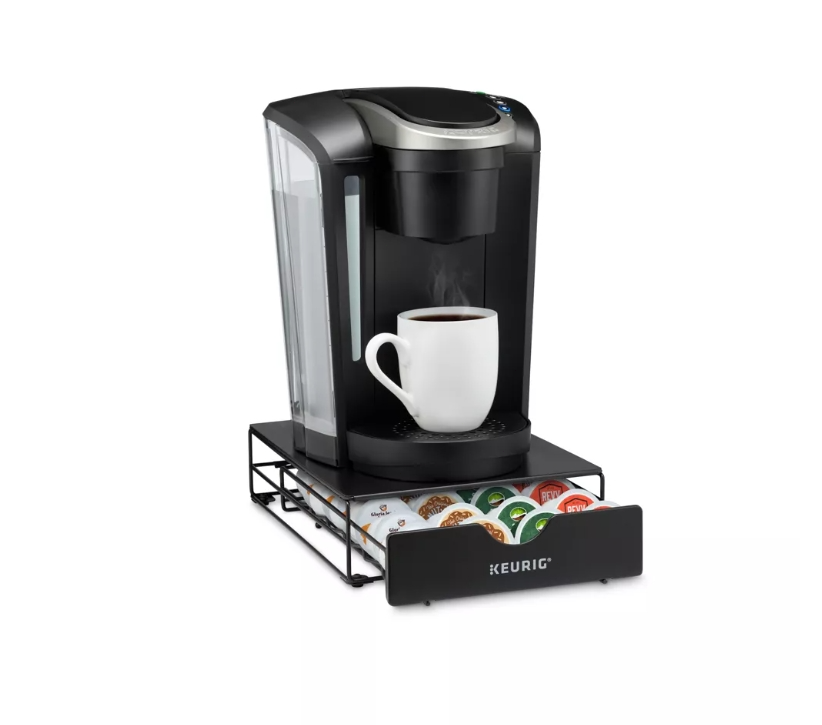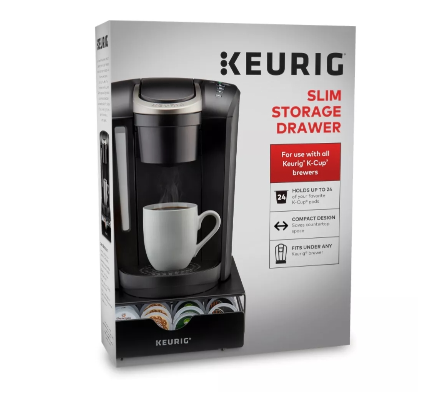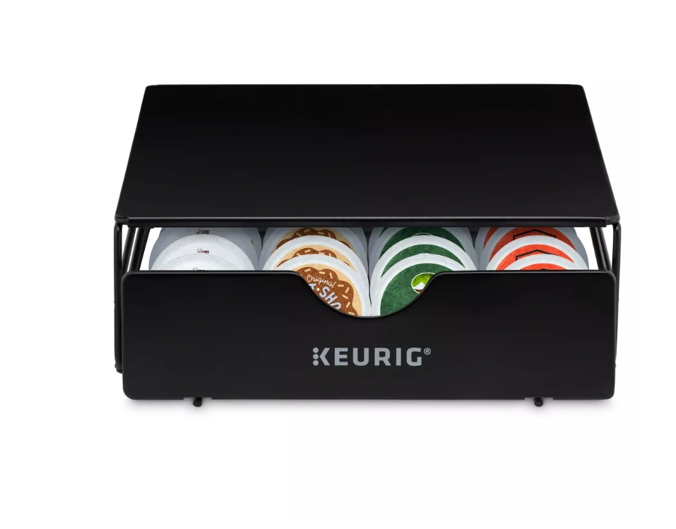 Holds up to 24 K-Cup pods Compact design takes up no additional counter space Fits under any Keurig coffee maker High quality, durable metal construction Not compatible with K-Mug, K-Carafe, Vue, or Rivo pods