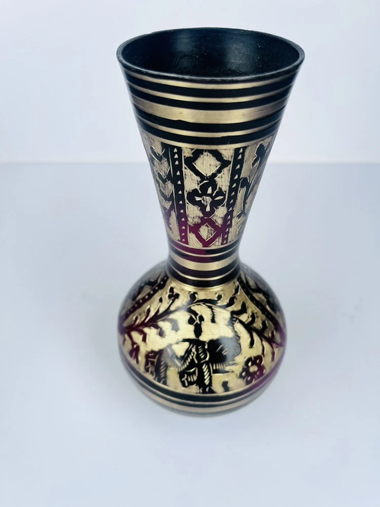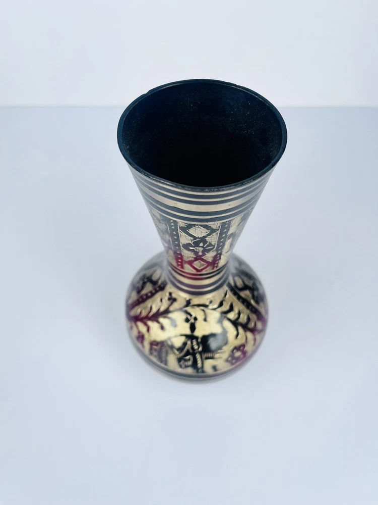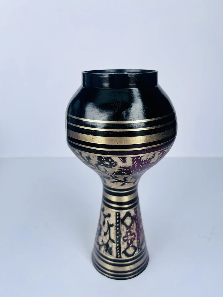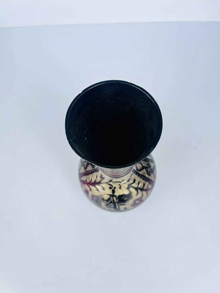 Black Metal Vase With Brass Etched Gold In Beautiful Floral Design Medium Size. Beautiful etched vase elegant great piece