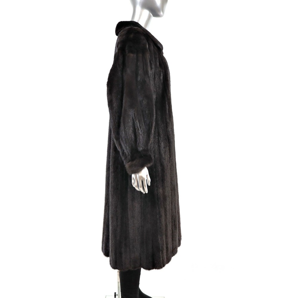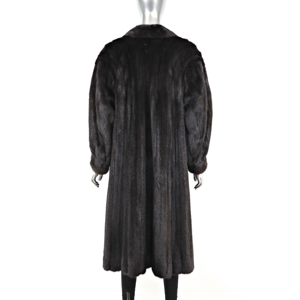 Full Length Black Mink Coat #USED FURS #VINTAGE FURS #PREOWNED FURS CONDITION: GOOD PRE-OWNED CONDITION, SOFT AND SUPPLE, NICE COAT! THIS FUR WAS TAKEN CARE OF VERY WELL BY THE PREVIOUS OWNER AND HAS BEEN KEPT IN COLD STORAGE. THIS FUR WILL LAST FOR MANY YEARS. PLEASE SEE PICTURES FOR ALL DETAILS Measurements: Size: M Approximate Bust: 46 " Coat Length: 43 " Shoulder to Shoulder: 20 " Sleeve length from Shoulder: 25" Sweep: 74 " Brand: Unknown Monogram: Yes Closures: Hooks and Rings Pockets: Two side pockets and one inside pocket OUR MANNEQUIN IS SIZE EXTRA SMALL (BUST: 33" - WAIST: 25" - HIP: 35" - SHOULDER: 18" - SLEEVE: 24") Shipping: We ship via UPS ground shipping for $20.00 for addresses within the US. Items will be shipped out within 3 days of cleared payment. We welcome international bidders. International shipping fees will be calculated at purchase and the item will be sent via DHL Express. International shipping time may vary. Please email us with any questions! All International buyers are responsible for any custom or duty fees when purchasing! Returns: Returns are accepted within 14 days of receipt. Item must be in the same condition as shipped to receive a refund. Shipping charges are non-refundable. Buyer is responsible for return shipping fees. Check out our other listings for more gorgeous fur coats and accessories! ITEM# 6311