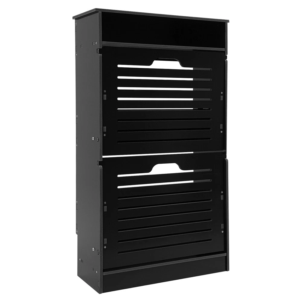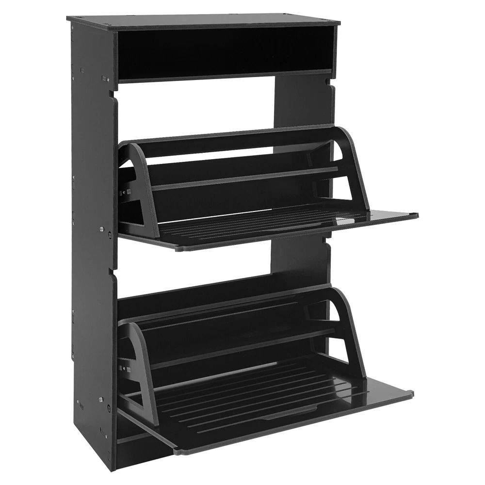 This shoe storage cabinet is a game-changer for small spaces! The sleek black design fits perfectly in my entryway without looking bulky. It holds 8 pairs securely, and the flip-down doors make grabbing shoes super easy. Assembly was straightforward, and the PVC material feels sturdy—no wobbling even when fully loaded. Love that it hides clutter while keeping everything within reach. Perfect for sneakers, flats, or small boots. Highly recommend for anyone needing smart, stylish storage!