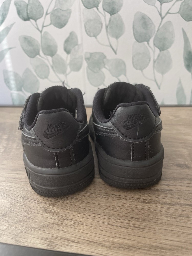 US Shoe Size: 8 Theme: Air Force Shoe Shaft Style: Low Top Accents: Logo Type: Athletic Vintage: No Occasion: Casual Pattern: Solid Lining Material: Fabric EU Shoe Size: 29.5 Shoe Width: Standard Outsole Material: Rubber Model: Nike Air Force 1 UK Shoe Size: 7.5 Heel Height: Flat (Under 1 in) Closure: Lace Up Cleat Type: Rubber Season: Summer, Spring, Fall, Winter Upper Material: Leather Toe Shape: Round Toe Performance/Activity: Walking Color: Black Style: Sneaker Features: Comfort Brand: Nike Cushioning Level: Moderate Product Line: Nike Air Force 1 Heel Style: Flat Handmade: No Department: Unisex Kids