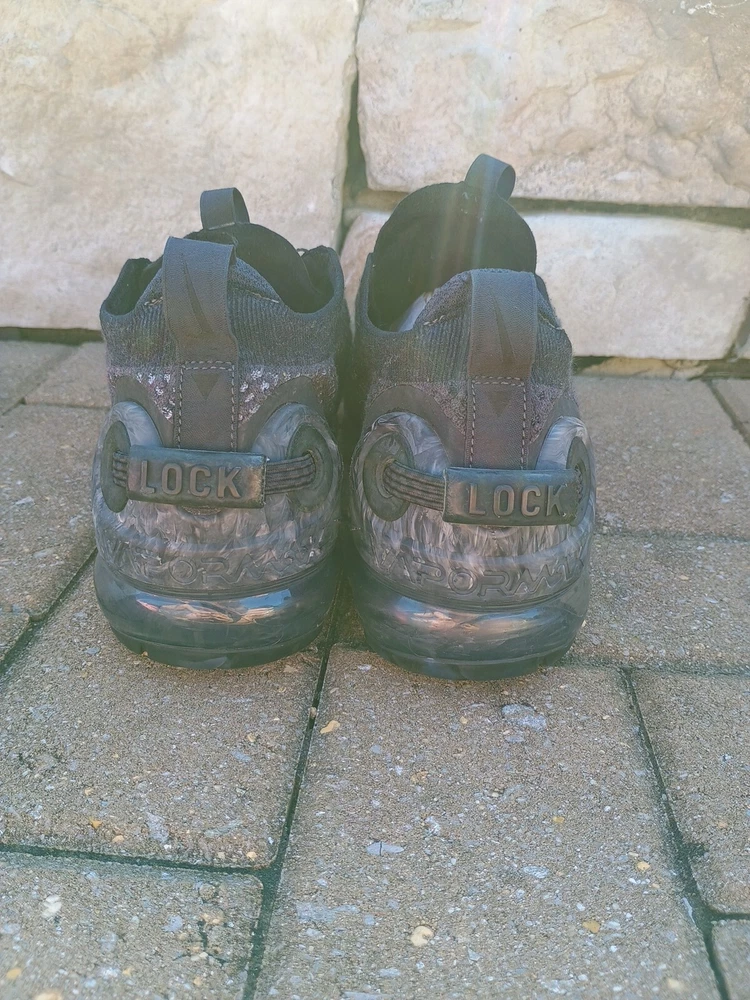 Elevate your sneaker game with these sleek black Nike Vapor Max Lock In. Designed for men, these athletic shoes are perfect for any workout or casual day out. With a US shoe size of 8, these sneakers are sure to fit comfortably while providing the support you need. The Nike VaporMax product line is known for its innovative design and these sneakers are no exception. Featuring a classic black color and sleek sneaker style, they are perfect for any outfit and occasion. Don't miss out on the chance to add these Nike Vapor Max Lock In sneakers to your collection.