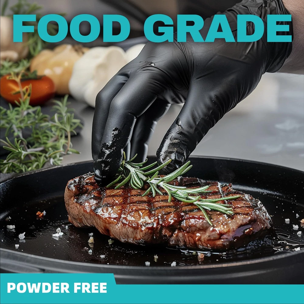 Black Nitrile Exam Gloves, 4.0 Mil, 100 Pcs Disposable Gloves Powder-Free Latex-Free for Medical, Cooking, Food-Safe,Non-Sterile gloves LATEX-FREE & POWDER-FREE: Nitrile Gloves contain no natural rubber latex and are manufactured without powder, It is an ideal solution for those affected by common glove allergies and sensitivities. FEATURES: Black nitrile has a smooth finish for greater tactile feedback, this glove comes with 4 Mil thickness, which is the perfect thickness for most daily uses. BULK QUANTITY: conveniently packaged to reduce storage space while ensuring a supply is always on hand - 100 Pcs disposable gloves per box. MULTIPLE USES: Gloves are great for use in a lab, kitchen, shop, or around the house - it protects, cleans, grips, and works as hard as you do.