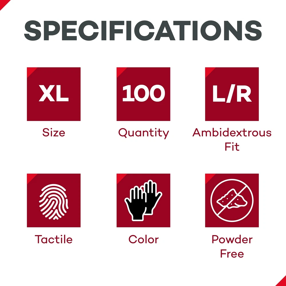 Slip into sanitary safety with these black, small disposable gloves. Whether you’re performing routine checkups, stocking up the classroom, or prepping a tattoo shop, these disposable medical grade gloves from do wonders. Constructed of safe nitrile material with flexible beaded cuffs, our gloves deliver the dependable grip, rugged durability, and soft comfort you need to last the workday. Patients and wearers benefit from our powder and latex-free hypoallergenic material, while operators enjoy bulk packaging and easy accessibility with our handy dispenser boxes. Pick up a few cases of these 100 count disposable nitrile gloves to prepare your personnel for any task including home healthcare visits, housekeeping, medication dispensing, food manufacturing, hair and beauty services, and more. At , we work hand in glove with businesses to provide the highest quality supplies at the most affordable prices. Add a box of Nitrile Medical Grade Exam Gloves to your cart today! Powder Free Black Nitrile Exam Gloves: Providing more protection and eliminating allergies associated with latex gloves, these pull-on closure black nitrile gloves are expertly crafted out of nitrile material to provide optimal protection and comfort. They are both unisex and ambidextrous for a wide variety of fits. Optimal Comfort: nitrile gloves are designed with a highly elastic fit and beaded cuffs to provide a snug, secure fit when wearing for extended periods of time. Additionally, they offer tactile sensitivity for delicate patient care. They can be used by emergency personnel, food craft services, home care, vets, dental associates, lab techs, medical staff, and more. Utmost Protection: The ambidextrous and disposable exam gloves are non-allergenic and non-irritating making them perfect for people with sensitive skin and those who are prone to allergic reactions. They are durable enough to protect against liquids and debris. These versatile nitrile gloves are strong while still giving you the dexterity and control you need for finer needles or equipment. Multi-Purpose Nitrile Gloves: Bulk nitrile gloves are ideal for dispensing medication, non-invasive physical examinations, lab work, hair coloring, tattooing, grocery shopping, painting, cleaning, pet care, home improvements, hobbies, and arts & crafts. These ambidextrous unisex exam gloves can be worn on either the right or left hand, and fit both men and women equally. Efficient Packaging: Soft-Fill Technology dispenses the medical examination gloves with unwrinkled ease because they are packaged flat. This allows for more efficient and expedient use when you need to grab a pair of sanitary disposable gloves. They are packaged in compact, stackable boxes, that make them easy to store.