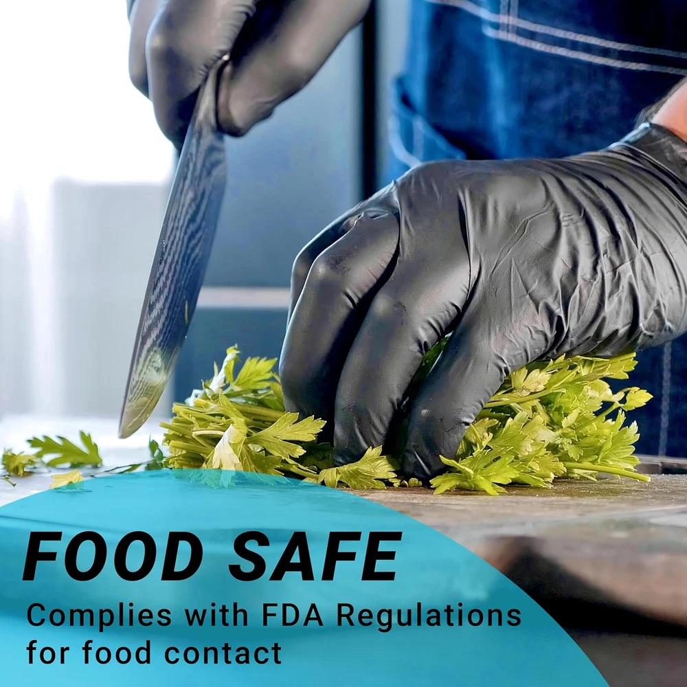 Product Description Shop More ASAP Disposable Gloves Add to Cart Add to Cart Add to Cart Add to Cart Add to Cart Customer Reviews 4.7 out of 5 stars 3,774 4.6 out of 5 stars 976 4.6 out of 5 stars 1,314 4.6 out of 5 stars 773 4.6 out of 5 stars 394 4.5 out of 5 stars 245 4.4 out of 5 stars 226 Price $10.99 $ 10 . 99 $5.99 $ 5 . 99 $13.99 $ 13 . 99 — — $5.50 $ 5 . 50 $11.99 $ 11 . 99 Color Black Blue Black Orange Orange Blue Natural Latex Thickness 4 mil 4 mil 6 Mil 4 mil 8 mil 3 mil 4 mil Material Nitrile Nitrile Nitrile Nitrile Nitrile Nitrile Latex Medical Grade ✔ ✔ ✘ ✔ ✘ ✔ ✔ Latex Free ✔ ✔ ✔ ✔ ✔ ✔ ✘ Do these gloves contain Latex? No, this black nitrile glove is both latex-free and powder-free, making it a safe choice for individuals with latex allergies. How thick are these disposable gloves? These nitrile gloves are 4 mil thick, offering a balance of durability and flexibility. They're ideal for a wide range of medium to heavy-duty tasks. Are they approved for medical use? Absolutely! Our nitrile gloves comply with ASTM standards for Examination grade and Medical application. Can you use them for food use? Yes! They are FDA approved for food contact. They also have good heat resistance, great for food prep, bbq, and more!