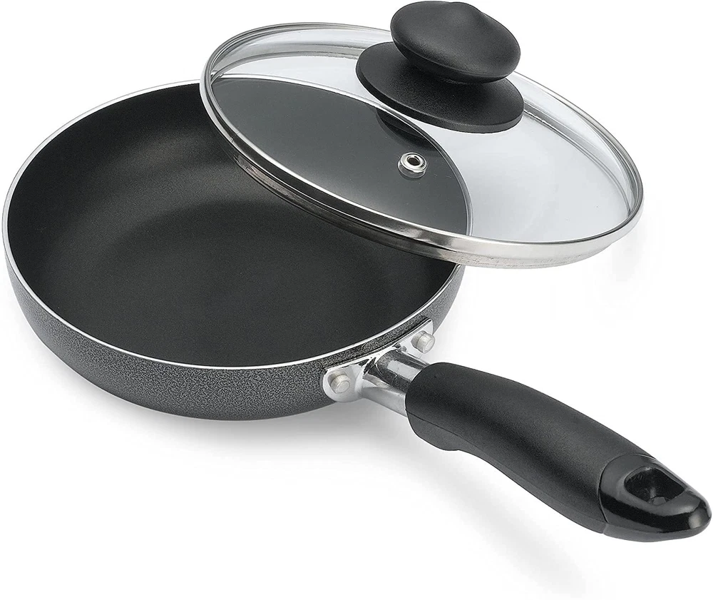 BC-79030 Features: -Inside surface: Non-Stick. -Aluminum coating. -Dishwasher safe. -Glass lid. Dimensions: Overall Height - Top to Bottom: -2". Overall Width - Side to Side: -13". Overall Depth - Front to Back: -6". Overall Product Weight: -1.25 lbs. CONTENTS: Aluminum non-stick frypan with a glass lid to cook up many types of meals. USES: With a non stick surface it makes it easier to cook anything from eggs, bacon, stir fry, veggies, fish and many more. CLEANING: After enjoying your delicious meal it's time to clean up, and it couldn't be easier with this frypan being dishwasher safe. SAFETY: Having a glass lid and sturdy handle, brings ease to cooking without getting burned. DURABILITY: Made of aluminum has a strength to avoid getting dings or scratches if dropped by accident.