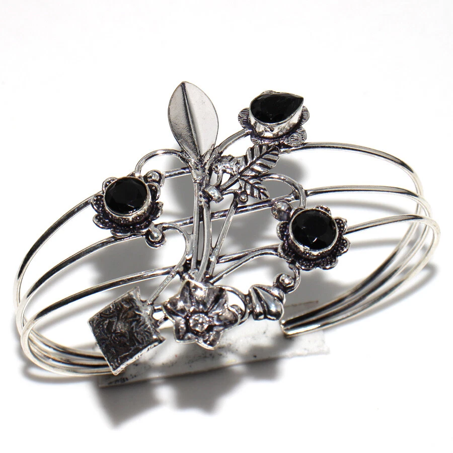 Black Onyx 925 Silver Plated New Design Bangle FreeSize Stylish Gift JW