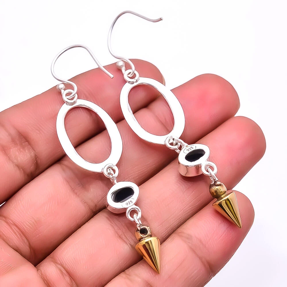 Theme Beauty Main Stone Depth As Seen in Picture Main Stone Length As Seen in Picture Main Stone Width As Seen in Picture Seller Warranty Yes Shape As Seen in Picture SKU E_9283_225_42 Main Stone Size 8X6 Mm Antique Yes Handmade Yes Type Earring Style Drop/Dangle Metal Sterling Silver Metal Purity 925 Parts Per 1000 Base Metal Sterling Silver Total Carat Weight 34 Main Stone Black Onyx Main Stone Creation Natural Main Stone Shape Oval Main Stone Color Black Main Stone Treatment Natural Material Gemstone, Stone Number of Gemstones 2 Item Length 2.73 Features Engraved, Nickel-Free, Handcrafted Ear Area Lobe Brand Unbranded Country/Region of Manufacture India Country of Origin United States Color As Seen in Picture Diamond Clarity Grade Not Applicable Number of Diamonds As Seen in Picture Item Diameter As Seen in Picture Gemstone Clarity Grade Opaque Diamond Color Grade Not Applicable Customized No Colored Diamond Intensity Not Applicable Certification 100% Genuine Guaranteed Setting Style Bezel Occasion Christmas, Birthday, Anniversary, Engagement, Wedding, Valen Shipping & Handling - Charge - 1st item-5.90 And Additional item-1.90 Handling Time - 1 Days . Delivery Time - 2 TO 3 DAYS. Shipping Service - USPS First Class Package 2 -3 Days. Returns - 1.We offer a 100% Money Back Guarantee minus shipping for 30 days after receiving the Item / item's. 2..The item must not be altered or damaged in any way shape or form. 3.Upon receiving these items your payment will be refunded. 4.Email us for return instructions before sending merchandise back. 5.Please allow up to 1 business day for all returns to receive credit. 6.Sizing does not affect the return policy. Payment - We accept PayPal for Payment ,should made with in 14 days once buying or winning done , in case of late information expected .