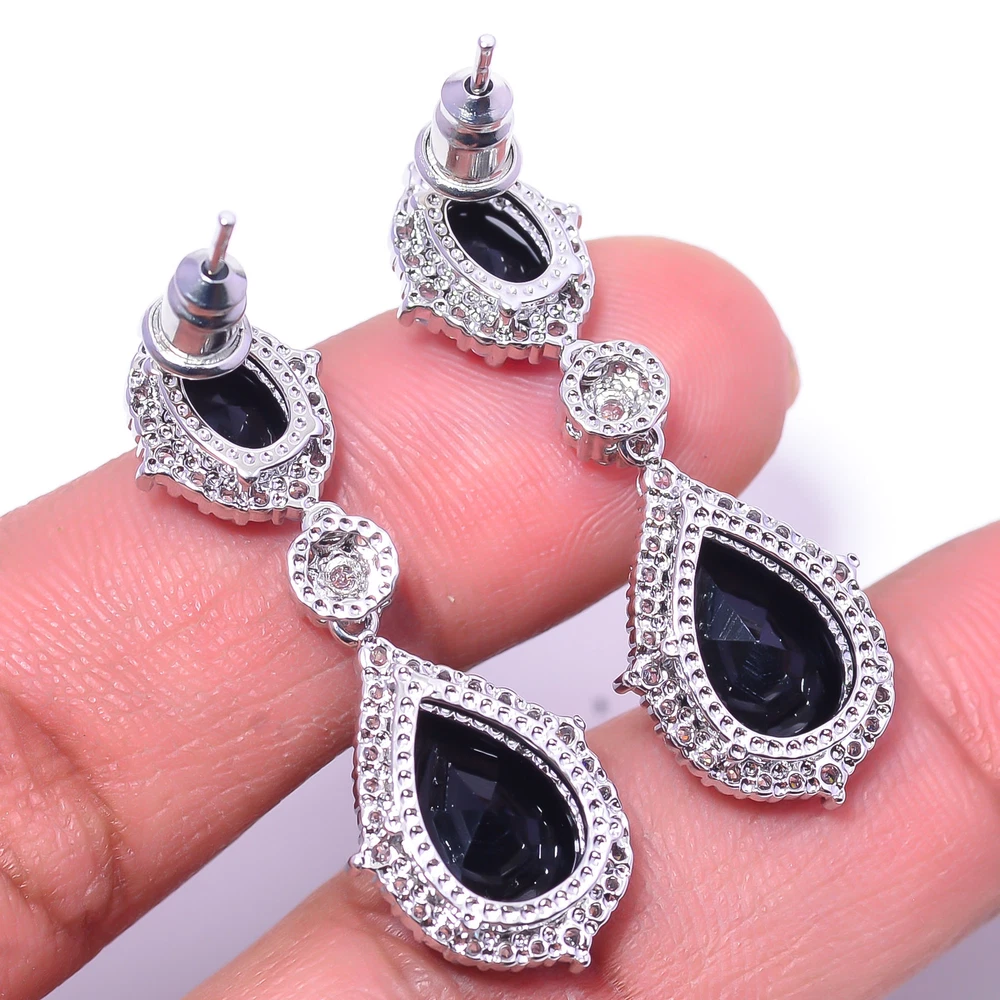 Total-weight-of-Jewelry 7.5 grams Main Stone Depth As Seen in Picture Main Stone Length As Seen in Picture Main Stone Width As Seen in Picture Seller Warranty Yes Handmade Yes Shape As Seen in Picture Signed Yes Vintage As Seen in Picture Wholesale Yes Occasion Christmas, Birthday, Anniversary, Engagement, Wedding, Valen SKU E_9764_774_9 Unit Quantity 1 Unit Type Unit Type Earring Style Dangle/Drop Main Stone Black Onyx Main Stone Creation Simulated Main Stone Color Same As Picture Main Stone Shape Same As Picture Main Stone Treatment Simulated Brand Unbranded Metal Sterling Silver Setting Style collet setting Number of Gemstones 4 Metal Purity 925 Parts Per 1000 Item Length 1.37" Item Diameter Unknown Features Unknown Ear Area Lobe Cut Grade Unknown Customized No Country/Region of Manufacture India Country of Origin United States Base Metal Sterling Silver Secondary Stone CZ Material Gemstone Color Same As Picture Theme Beauty Antique Same As Picture Shipping & Handling - Charge - 1st item-5.90 And Additional item-1.90 Handling Time - 1 Days . Delivery Time - 2 TO 3 DAYS. Shipping Service - USPS First Class Package 2 -3 Days. Returns - 1.We offer a 100% Money Back Guarantee minus shipping for 30 days after receiving the Item / item's. 2..The item must not be altered or damaged in any way shape or form. 3.Upon receiving these items your payment will be refunded. 4.Email us for return instructions before sending merchandise back. 5.Please allow up to 1 business day for all returns to receive credit. 6.Sizing does not affect the return policy. Payment - We accept PayPal for Payment ,should made with in 14 days once buying or winning done , in case of late information expected .